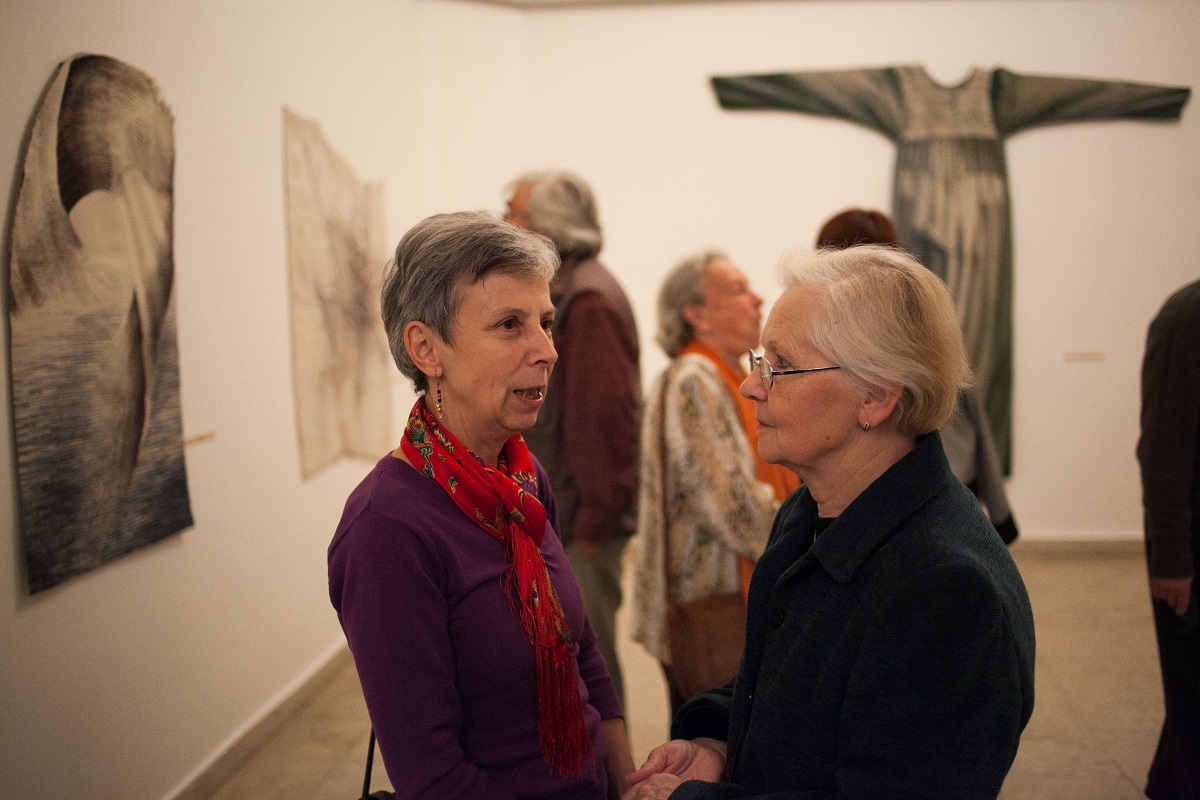 És most mégis és egészen másképpen, újabb drámai élményben lehetett részünk, ezen a legutóbbi, a pesterzsébeti kiállításán. Az úgymond már ismert művei, mint például a Katonatakaró, az Anyaság, a Babatakaró vagy Az élet kenyere, vagy akár a Psyché, a Hajtogatás, a Fontos kis zsebkendő, a Petőfi Sándor idézetekre, vagy Luther Mártonra emlékező művek, a Ködmön, a Himnusz és a többiek mind, egyenként a maguk keletkezéséhez fűződő történeteivel újabb jelentést kaptak a mi jelen időnkben. Itt Magyarországon, a Kárpát-medencében, a világ drámai eseményeinek egyre szorongatóbban halmozódó történéseinek közelségében. Miközben szemléljük a finom gyapjúszálakból elénk táruló jelenségeket, már nem szubjektív egyéniségek vagyunk, hanem a Nagy Egésznek kicsiny szereplői, netán egy időtlen bibliai üzenet mai megtestesítői. Ennek a felülemelkedésnek a határtalansága mellett azonban tán még jobban és plasztikusabban érezhetjük a „csakisamiénk" intellektuális és érzelmi erejét. Polgár Rózsa minden művét szívszorongatóan konkrét személyes élményei inspirálták. A háborús pusztítások közvetlen, és következményeiben is romboló élménytömege, 1956 reményei és csalódásai, az ezek árnyékában újra meg újra épülő örök család… Halk szavú, benső csendességgel beszéli el, amint a közvetlen mellette lebombázott ház romjai alól kikandikáló két kis kézben a húgáét fedezte föl, a törmelék kétkezi lekaparásával mentve meg őt a haláltól. A halálos lövést kapott fiatal férfi roncsolt testének felejthetetlen látványát. A háborús pusztítások közepette meghalt anyát, a kitelepítések nyomorát, a mindent elborító romok közötti, gyermeki túlélési érzéseit és így tovább. A nyomasztó élmények sokszoros átélése mindent belékarcol a lélekbe, mintegy dokumentumfilmként, rögzíti azokat. Polgár Rózsa csakis ezekre a fontos gondolatokra koncentrál. A részletek felnagyításával, a kompozíció rafinált leegyszerűsítésével nem engedi elkalandozni a figyelmet, sőt. A gondolat finomművű megszövése, a kép látványának drámája olyan kontraszt, amely beszívja, és rákényszeríti nézőjét a dráma benső megélésére. A Gyűrődés, a Szorítás és a hasonló, mesterfokon megszőtt kárpitok velünk élő jelenidejűségét nem csak a kiállítás résztvevői viszik magukkal. Mindezt messzemenően átérezhették azok is, akik talán először találkoztak a művésznő sajátos „filmjével" – szelídsége még jobban megerősíti a korszak történelmi hitelességét, az emberi lényeg örökké jelenvaló teremtőképességét. Talán a reményt és a megbékélést is. A művek valódi megértéséhez igen nagy szükség van a fiatalok, a háborút soha meg nem élt korosztály e témákban szükséges elmélyülésére. Polgár Rózsa alkotóként erre minden esélyt felkínál. A kiállítást megnyitó Sárosdy Judit művészettörténész árnyalt elemzéseivel gazdagodott az életmű méltatóinak köre, amelyhez az MMA Iparművészeti Tagozatának vezetője, Simon Károly tervezőművész a kiemelkedő alkotó akadémiai jelentőségének hangsúlyozásával, illetve magának az akadémiai mércének a méltatásával járult hozzá.