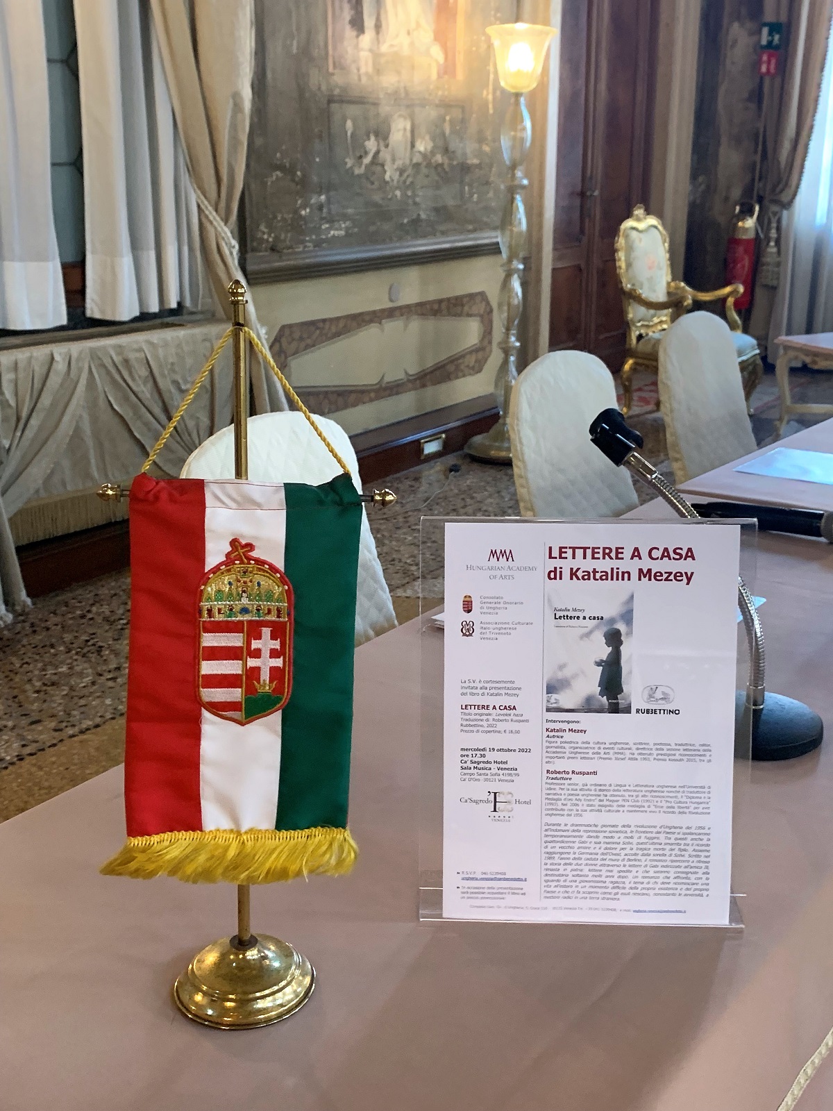 Egy ötvenhat őszén édesanyjával együtt Németországba menekülő kamaszlány örömeit és csalódásait ismerjük meg Mezey Katalin Kossuth-díjas költő, az MMA rendes tagja „Levelek haza" című regényéből, mely három magyar kiadást követően immáron olaszul is olvasható. A Roberto Ruspanti irodalomtörténész professzor, műfordító által lefordított „Lettere a casa" című könyv október 17-én tartott bemutatójának helyszíne Bolognában a Teatro del Baraccano volt, majd október 19-én Velencében a Ca'Sagredo Zenetermében ismerhette meg a közönség a művet. A két rendezvényt és a mű fordítását és megjelentetését az MMA támogatta.