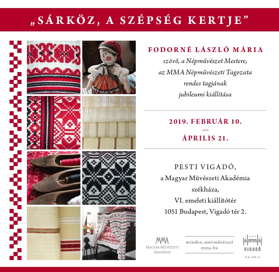 „… aki egyszer bejut a szépség kertjébe, az versöt is álmodhat meg írhat, meg éneköt is mondhat, meg szűhet, meg hímözhet, mert minden szépség egy tüvön van…" – mondta néhai Kati Éva népművész. Aligha lehet szebben fogalmazni egy olyan kiállítás beharangozójában, ahol a magyar nyelvterület egyik leggazdagabb szőtteskultúrájának, a sárközi szőtteskincsnek jelenlegi legjobb ismerője, legnagyobb mestere, Fodorné László Mária, a Népművészet Mestere, az MMA Népművészeti Tagozatának rendes tagja mutatkozik be, megidézve a szülőfalu, Decs és a tájegység, Sárköz szépségeit. A tanítómesterek emléke előtt egy-egy szőttesalkotásuk bemutatásával tiszteleg. A kiállításhoz áprilisban a kurátor, Landgráf Katalin közreműködésvel tárlatezetések is kapcsolódnak.