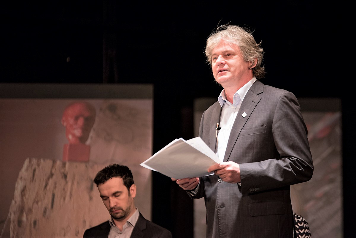 Ezután HAMVAS BÉLA MŰVEIBŐL Rátóti Zoltán, az MMA Színházművészeti Tagozata vezetőjének összeállítása („Hogy az Isten nevét ki tudjam ejteni") volt hallható Kubik Anna, az MMA rendes tagja, Bakos-Kiss Gábor, a Nemzeti színház színész-rendezője és Juhász Gábor jazzgitáros közreműködésével.