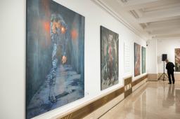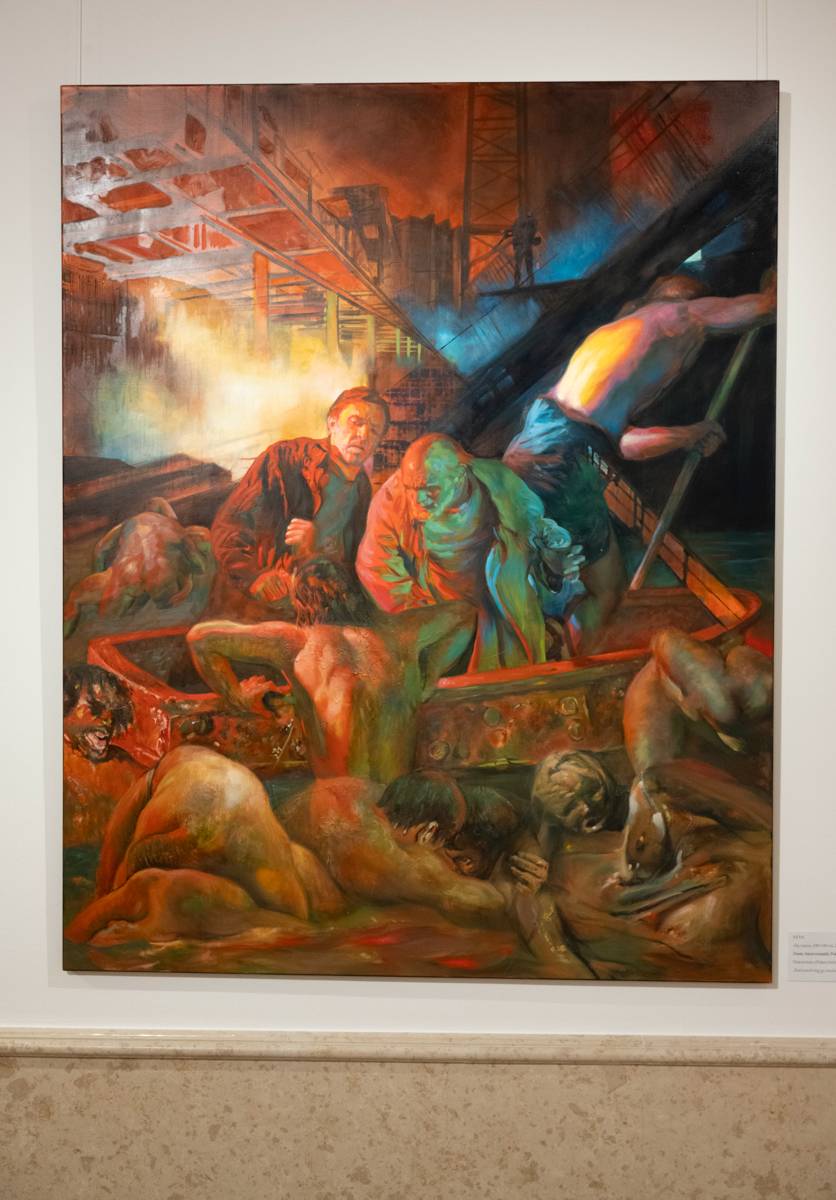 - Tizenkét nagyméretű festmény lesz látható a Vigadó ötödik emeletén, melyek egyetlen sorozatot alkotva Dante Alighieri Divina Commediájának első részéhez, a Pokolhoz készültek. A képek stílusát az egyszerűség kedvéért nevezzük figurális realistának. Lényegében nem térnek el korábbi képeimtől, legfeljebb abban, hogy irodalmi művet festményen eleddig még nem ábrázoltam.