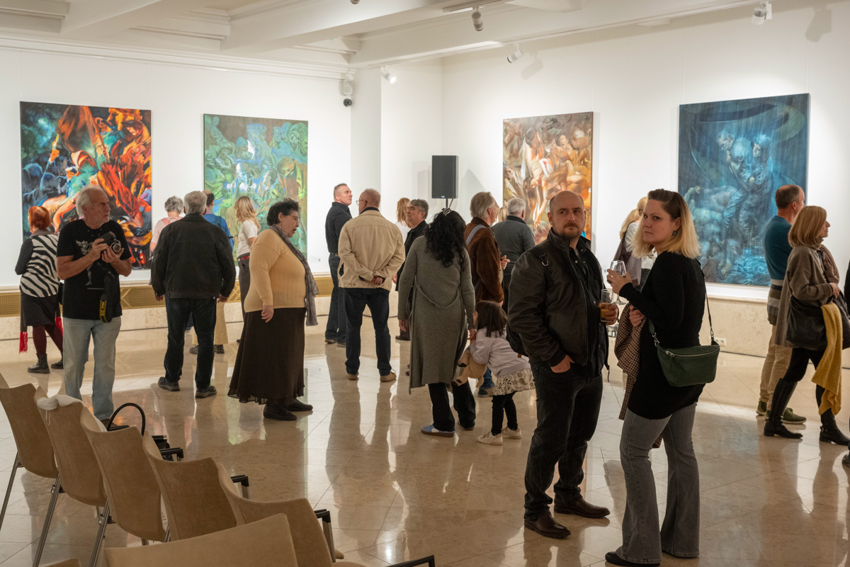 - 2019-ben a Műcsarnokban volt egy három termes kiállításom, amelynek anyagát 33 év terméséből válogattam. Azóta csak hat év telt el, így nem akartam némi változtatással megismételni a műcsarnoki áttekintést. Másrészt Dante műve annyira lefoglal az utóbbi időben, annyira fontossá vált, hogy elhatároztam, a magam módján megfestem a Színjáték mindhárom részét, melyből egyelőre a Pokollal fogok elkészülni, utána pedig folytatom a Purgatóriummal és a Paradicsommal – ha minden jól megy. A most kiállítandó képeket hosszabb tanulmányok után tavaly és idén festettem.