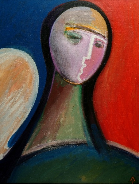 Ez a képzelet szárnyán közlekedő, térben is időben igen mozgékony, tiszavirágszerűen új és új alakot öltő angyalmotívum valóban úgy röpköd Aknay Jánosnál, mint mesékben a gondolat. Világokat hág át, csillagok közt jár-kel, de mindig visszatér alkotó (atyjához), a művészhez, s be-benéz az ajtókon, ablakokon, s fel-felbukkan az újra és újjáépített szentendrei kulisszák között, és a háztetők, keresztek és kálváriák felett. Lénye néha kettős: síkkonstrukcióba metszett pozitív vagy negatív absztrakció, félig jel és félig artikuláció, néha gyermek, néha leány, néha androgín álomarc, néha maga a köd, a sötétlő félelem vagy a barlangi magány, néha egy darabka konkrét valóság, néha aranyló szent, néha in memoriam festő vagy barát, néha a visszasugárzó múlt és néha a tünékeny jelen, néha a nap és néha a hold, néha árnyék, néha fény, néha szárnyas felhőként röpködő glóriás amőba-paplan, néha ablakban, kapuban időző gyémánthegyű piramis-ufó, néha őriz, néha véd, néha magányos, néha jó hírt hozó, néha rejtőzködő, néha tojásba vagy körképbe költöző végtelen titok, és néha Isten mosolyában fészkelő, önmagát többszöröző, ikonfióka némaság.                                               (Novotny Tihamér)