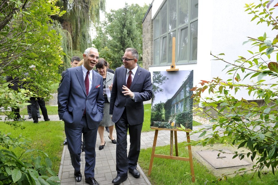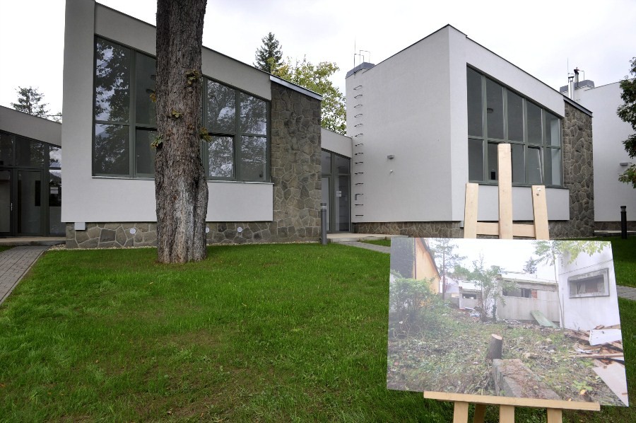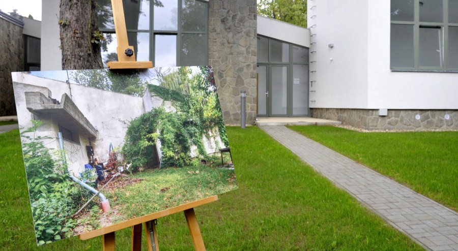 A megújult Szentendrei Régi Művésztelep és Galéria részlete, előtérben a régi állapotot ábrázoló fotó 2013. szeptember 27-én. Ezen a napon Balog Zoltán, az emberi erőforrások minisztere és Hornyák Tibor, a Magyar Alkotóművészeti Közhasznú Nonprofit Kft. ügyvezető igazgatója adta át a megújult művésztelepet. MTI Fotó: Kovács Attila