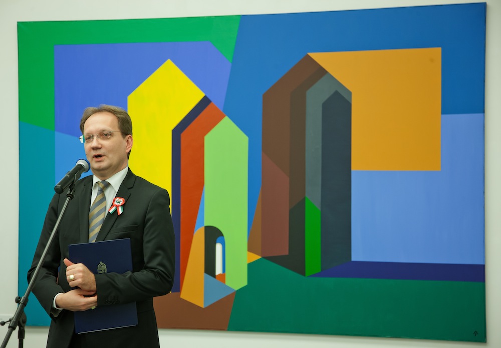 Hoppál Péter, az Emberi Erőforrások Minisztériumának (Emmi) kultúráért felelős államtitkára az eseményen azt mondta: a tárlat mélyen gyökerező magyar alkotóművészi pályát mutat be, amelyre jellemző a szentendrei iskola konstruktív, szürrealista gondolkodásvilága, és az az egyéni alkotói nyelv, amelyet Aknay János egy ízig-vérig magyar kódrendszerben, a magyar–székely rovásírás elvonatkoztatott képi ábrázolásában talált meg.