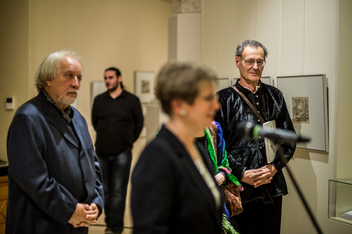 A Vigadóban most megnyílt kiállításon Kovács Tamás rézkarcai és tusrajzai egyaránt bemutatásra kerültek, az alagsorban a számítógépes grafikák kaptak helyet. A kiállítás szervezője a Magyar Művészeti Akadémia Képzőművészeti Tagozata.