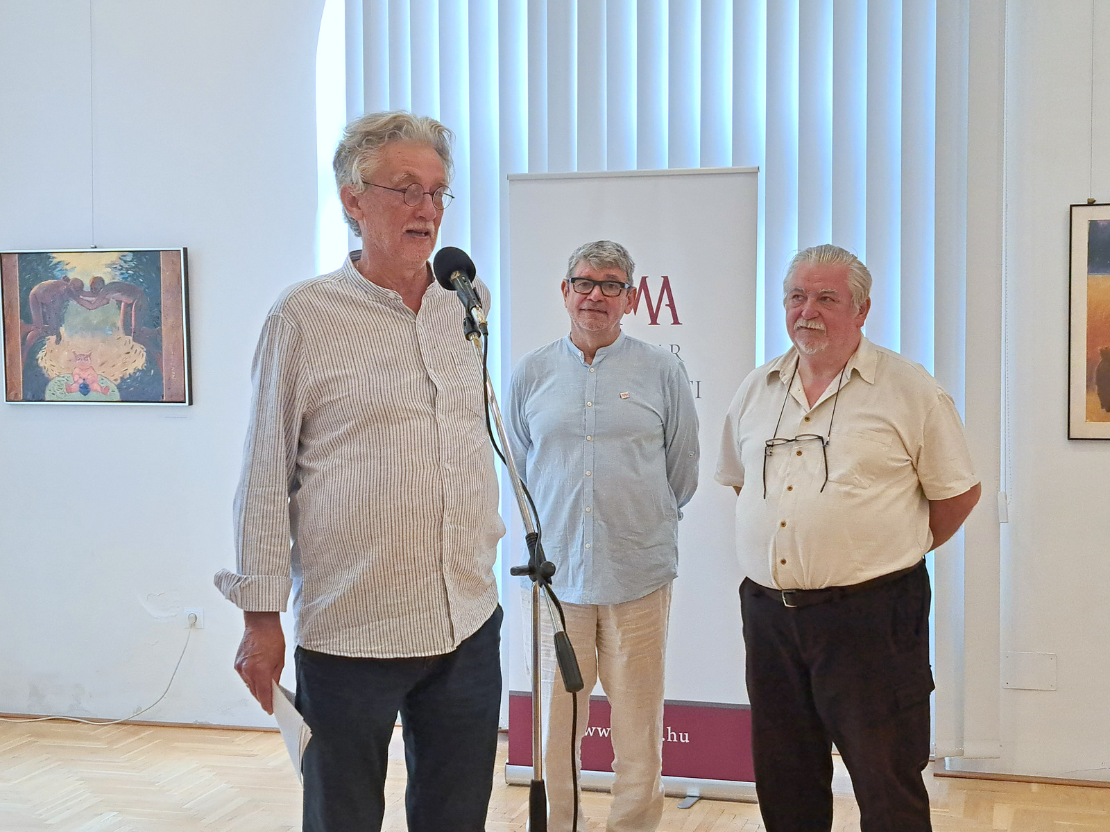 A megnyitón közreműködött Csák László hangász, aki az alkotások ihlette saját kompozíciójával köszöntötte a művészt.
