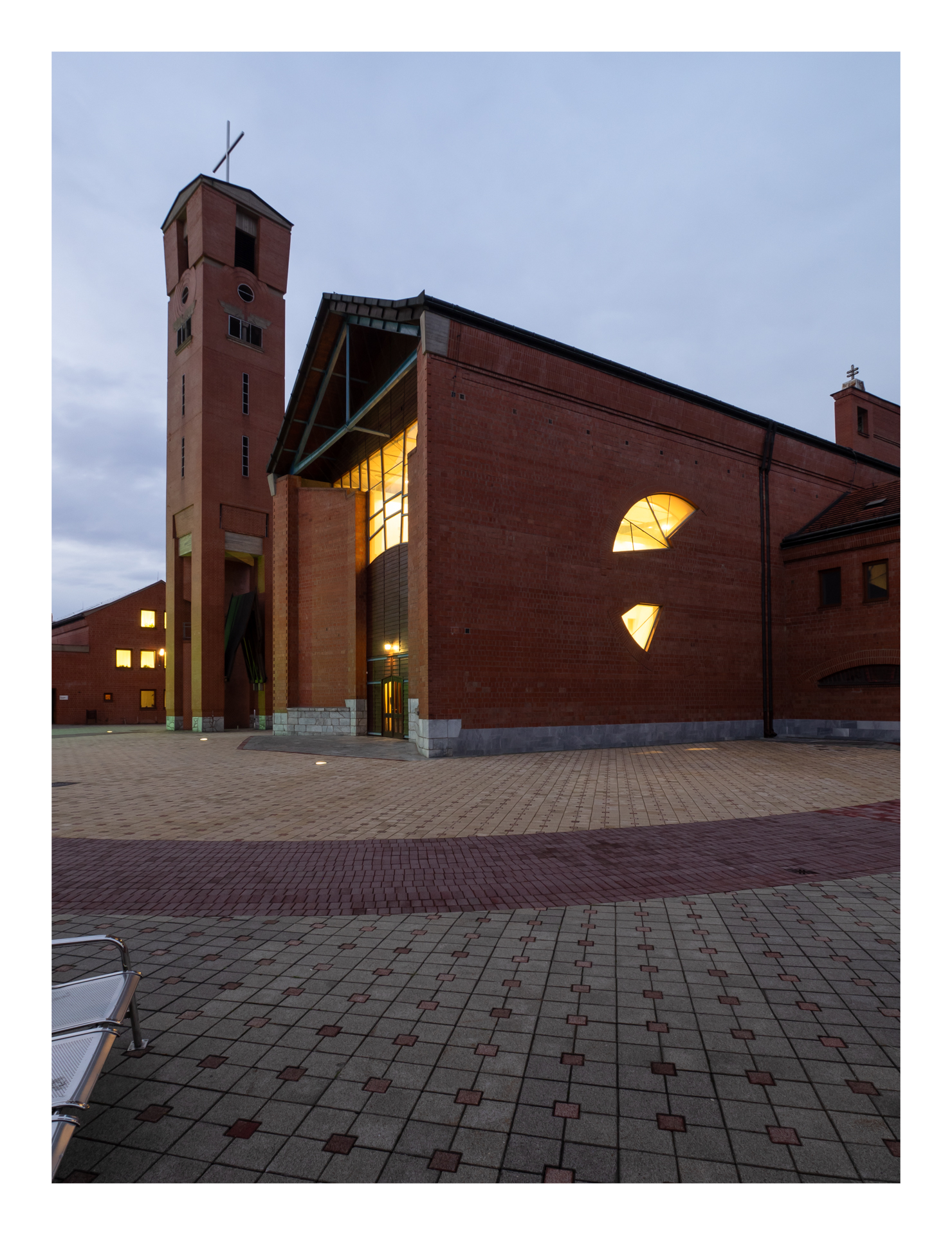 A mintegy tíz éven át (1990–2000) épülő alkotás a kilencvenes évek legnagyobb volumenű egyházi és oktatási beruházása volt. A negyvenezer embernek otthont adó, monumentális panelrengeteg közepén a brutális környezetet ellensúlyozni képes, néhány emelet magas masszív épülettömeg áll, amely nem elfordul, hanem kapukat nyit a lakótelep felé. A nyerstégla épületek (templom, gimnázium, parókia, rendház) organikusan fejlődött városra jellemző terek és udvarrendszerek láncolatát keretezik, amelynek gyújtópontjában a békét és erőt sugárzó templomtorony áll. A magyar románkori előképeket követő egyhajós templom síkfödémmel fedett csarnokteréhez félköríves záródású szentély kapcsolódik. A nyerstégla falazatok az időtlenséget képviselve állnak a lakótelep szürke vasbeton erdejében.