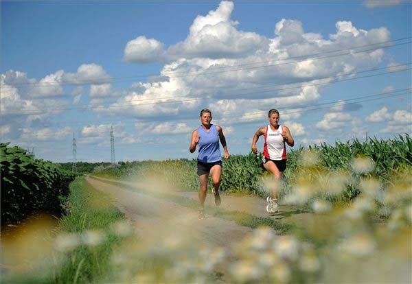 Biacsi Ilona és Biacsi Bernadett fut a szegedi határban. A 13 gyerekes családból származó 27 éves atléta ikerlányok életük első paralimpiáján álltak rajthoz Londonban az 1500 méteres futószámban. MTI Fotó: Beliczay László