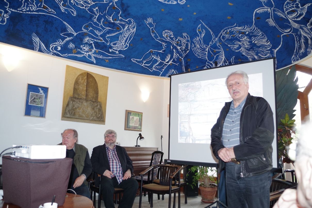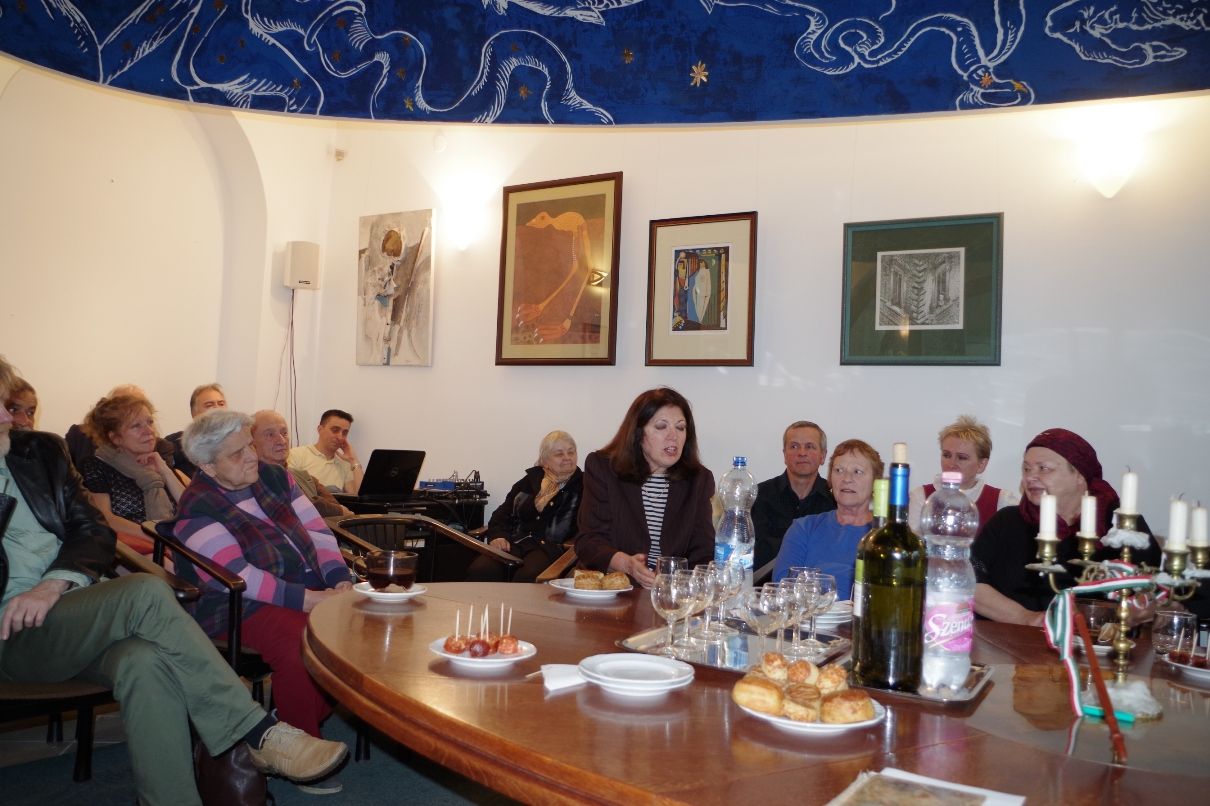 Tóth Menyhért (1904–1980) életéről és munkásságáról szóló könyvet ismertetett Földi Péter festő, főiskolai tanár a Kecske utcai találkozáson. A Tóth Menyhért című, színes képekkel bőven ellátott kötet bemutatóján a háznagyi teendőket Szemadám György látta el.