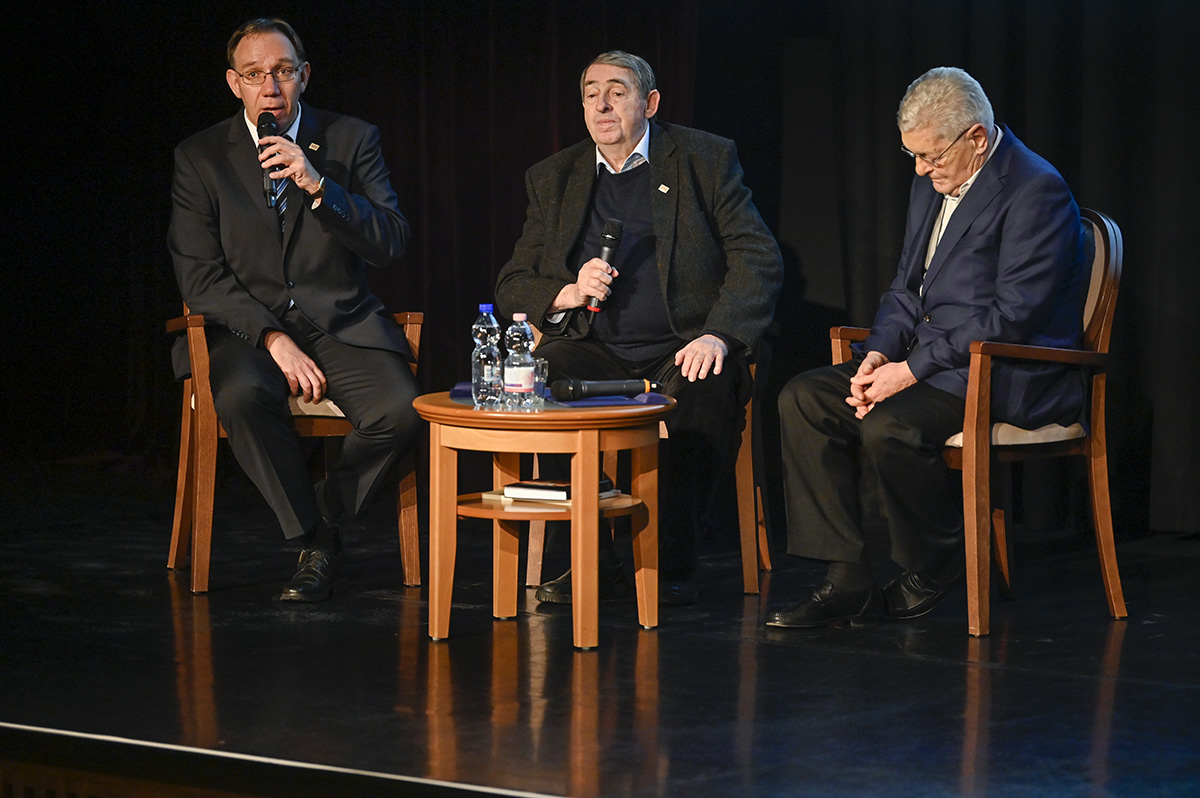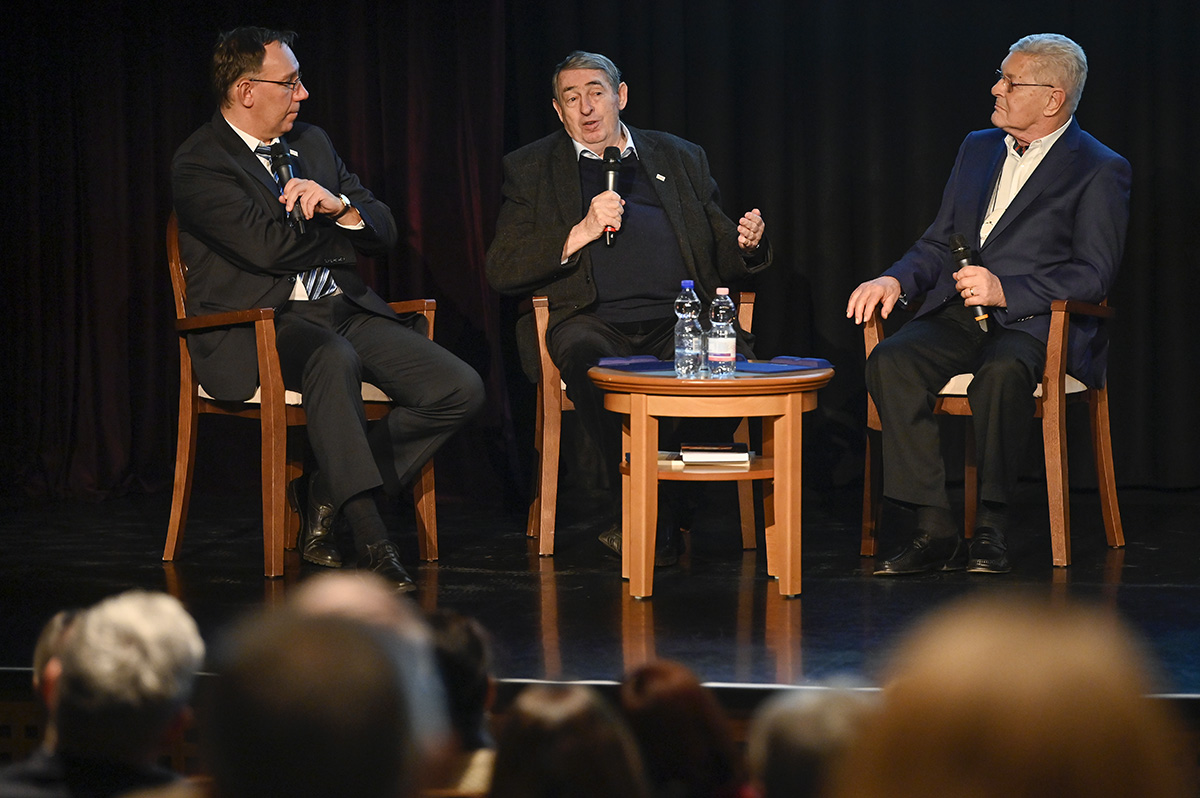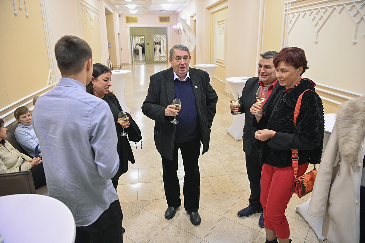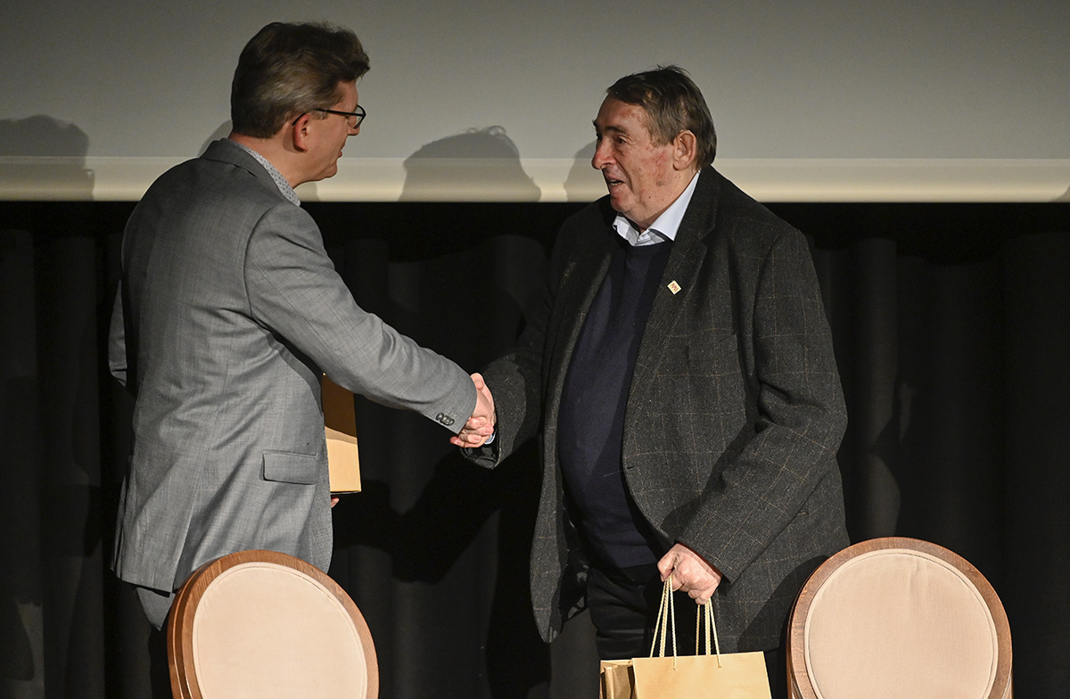 A beszélgetés után Buglya Sándor tagozatvezető és dr. Richly Gábor, az MMA főtitkára köszöntötte a nyolcvanadik születésnapját ünneplő András Ferencet.