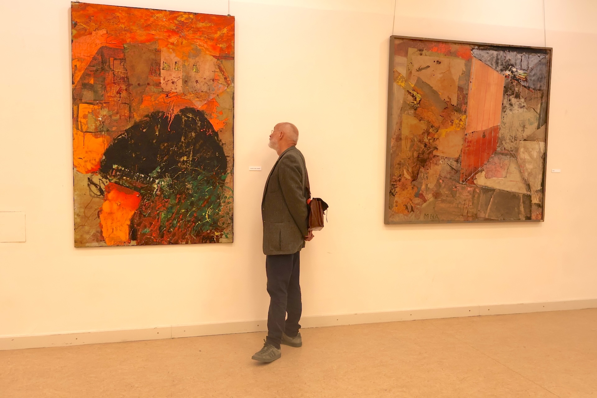 A művészettörténész hangsúlyozta: rend és rendezetlenség, törvényszerű és véletlen, szabálytalan és bizonytalan ütközik és kapcsolódik egymáshoz a vásznakon. Mint mondta, M. Novák András nem fest, nem ragaszt, nem vág, nem illeszt össze szép képeket, alkotásai már-már elég sokszor nem is képek, hanem asszamblázsok.