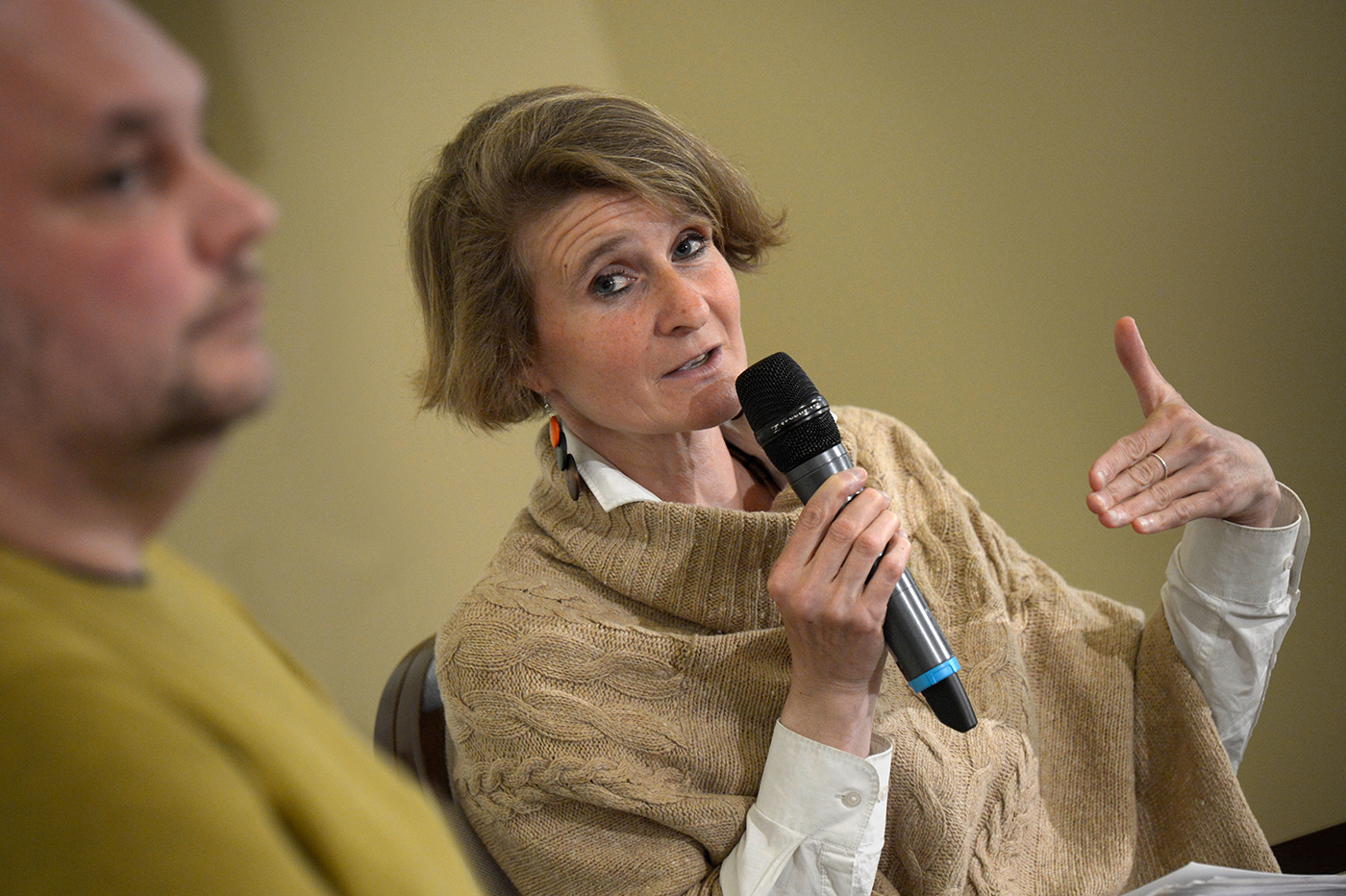 Martha C. Nussbaum Költői igazságszolgáltatás című könyvéről a kötet fordítójával, Pápay Györggyel beszélgetett Horkay Hörcher Ferenc. Mint az kiderült, Nussbaumot a szabályvezérelt, morált követő filozófiával való szembenállás jellemzi. Leginkább a filozófia és az irodalom kapcsolata, illetve az irodalom filozófiája érdekli a szerzőt, ebből a szempontból Murdoch tanítványának is tekinthető, a kötetből pedig választ kaphatunk ismertségük kezdetére. A filozófus szakértője a különböző antik szerzőknek, többek közt rengeteget foglalkozott Arisztotelész munkásságával. Meglátása szerint nem a szabálykövető tevékenység, hanem a jellemformálás, az erények formálása lenne a cél. A legfontosabb felvetése a filozófia és az irodalom határátlépésével kapcsolatban az emberi természet tökéletesíthetőségének ténye, azaz a benne meglévő hiányosságok, amelyek egyúttal az emberi természet javíthatóságát is jelentik. Ugyanakkor nem csak azért lehetnek az irodalmi művek érdekesek, mert példát mutatnak a gondolkodásra és a helyes életre: gyakran az azonosulás segít megérteni bizonyos döntéseket, ezáltal az irodalom egy megfelelő eszköz lehet arra, hogy tisztán lássunk egy adott helyzetet, akár jogi szempontból is.