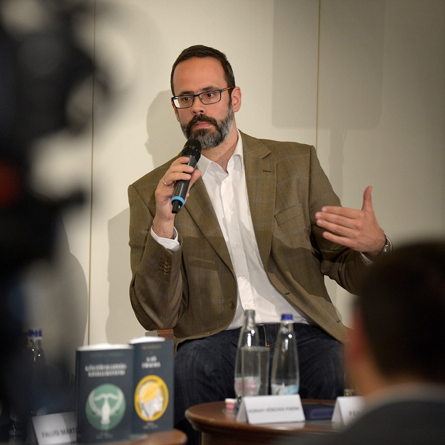 Iris Murdoch A jó uralma című műve kapcsán a kötet társfordítójával, Réthy Zsolttal beszélgetett Horkay Hörcher Ferenc politikai filozófus, irodalomkritikus, a Nemzeti Közszolgálati Egyetem kutatója és a Magyar Tudományos Akadémia Bölcsészettudományi Kutatóközpont Filozófiai Intézetének tudományos tanácsadója. Felmerült a kérdés, hogy miben rejlik a morálfilozófia és az esztétika közötti viszony – amelyek közegét a könyvsorozat a tágabb értelemben tárgyalja –, és miképpen lehetne az esztétikát mint a morálfilozófia eszközét társítani. Réthy elárulta, hogy jelen kötet szerzője, Murdoch nem csak filozófus volt, de 26 regény szerzője is, ennek ellenére tagadja, hogy regényeinek bármilyen köze lenne a filozófiához. Szereplői gyakran mégis filozofikus gondolkodásúak, amely a kisebb-nagyobb monológokban is visszaköszön. Filozófiája a második világháborúra adott válaszként is értelmezhető, és gyógyírként szolgálhatott a háború okozta sebekre, ideértve többek közt a jó fogalmának meghatározását.