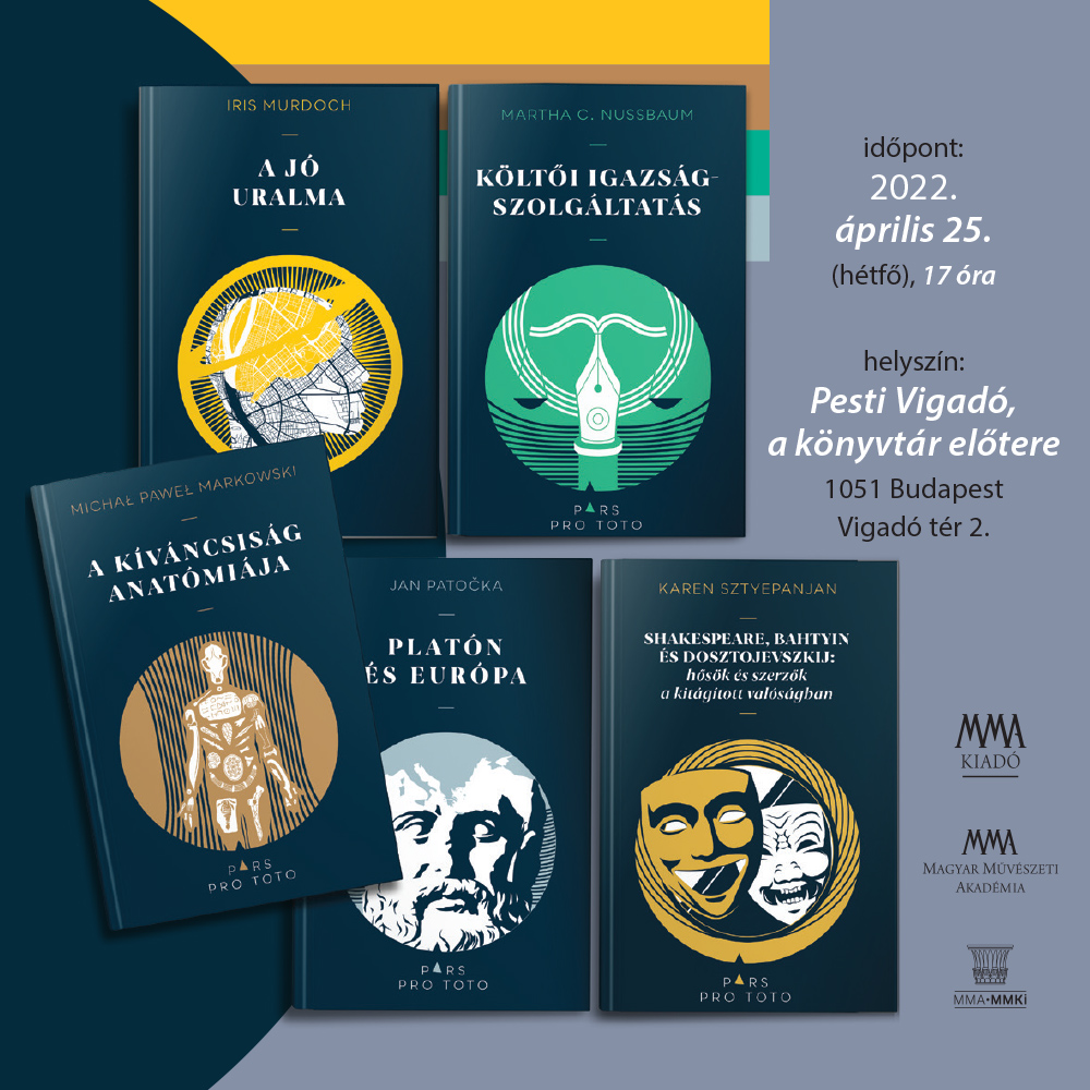 Az MMA Művészetelméleti és Módszertani Kutatóintézet és az MMA Kiadó közös sorozata, a Pars pro toto a hazai filozófiai és esztétikai fősodorban nem jelen levő, kevésbé hangsúlyosan tárgyalt, ugyanakkor nemzetközileg ismert és hivatkozott gondolkodók életművébe nyújt betekintést. A sorozat Roger Scruton A szépről című könyvének lefordításával indult három éve, azóta pedig már tízkötetesre bővült. A kiadó és az MMA kutatóintézete április 25-én a Pesti Vigadóban öt újabb, magyarra lefordított filozófiai művet mutatott be az olvasóknak. A kiadványokat kerekasztal-beszélgetésen Falusi Márton költő, az MMA MMKI munkatársa, Horkay Hörcher Ferenc eszmetörténész, esztéta, valamint a kötetek fordítói mutatták be.