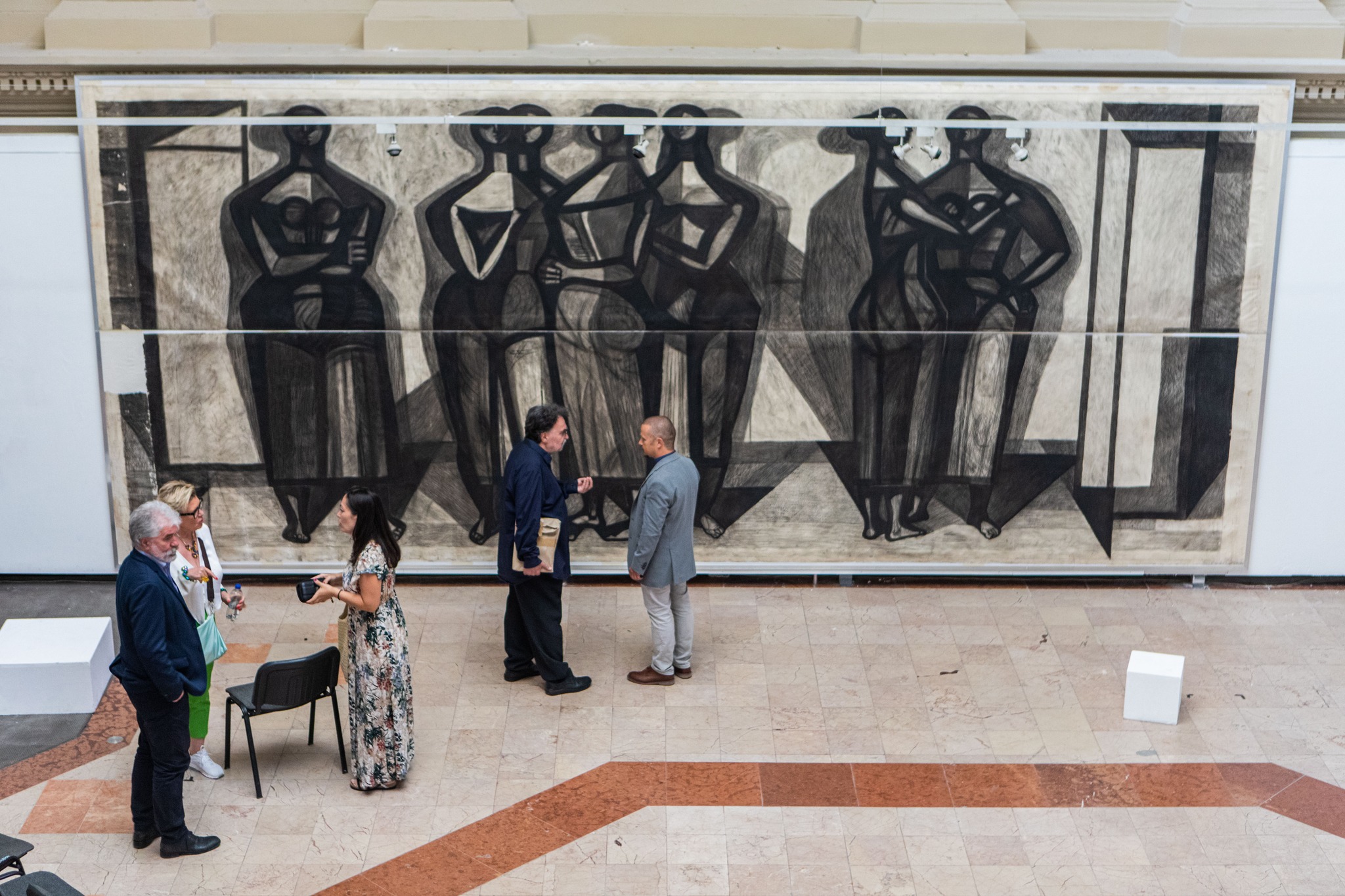 A Tökéletes egyensúly – Barcsay Jenő életműve új megvilágításban című tárlat július 16-i megnyitóján köszöntőt mondott Prof. dr. Erős István, az MKE rektora. A kiállítást megnyitotta Vincze Máté, a Kulturális és Innovációs Minisztérium közgyűjteményekért és kulturális fejlesztésekért felelős helyettes államtitkára. Szakmai ismertetőjében Szücs György művészettörténész Barcsay művészetének újbóli felfedezésére invitálta a közönséget. A Képzőművészeti Egyetem életmű-kiállításán látható ugyanis először a jubileumi év egyik szenzációja, az Asszonyok című monumentális szénrajz, amely 60 év lappangás után került elő. A 21 négyzetméteres mű 1964-ben készült, a Miskolci Nehézipari Műszaki Egyetem Barcsay-mozikájának előképe. A különleges rajzot a művész akkor készítette, amikor a Képzőművészeti Főiskolán anatómia tantárgyat tanított.