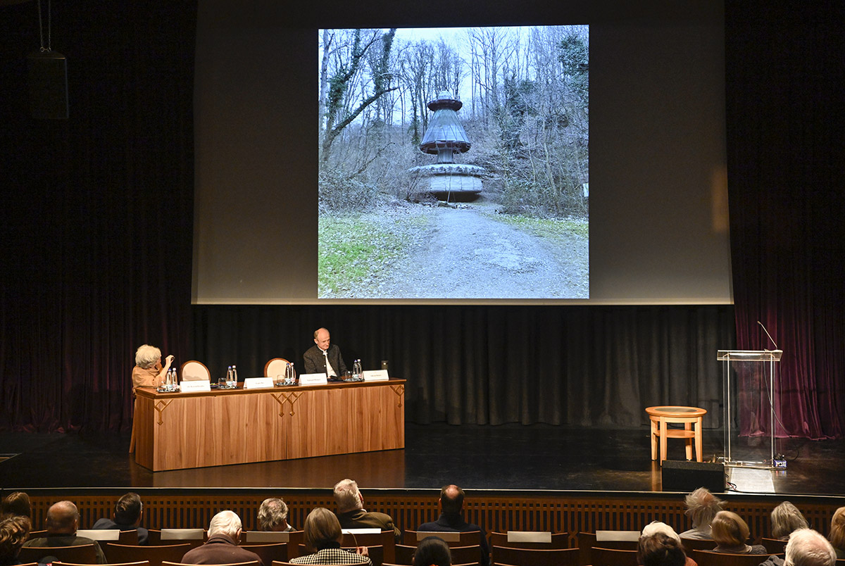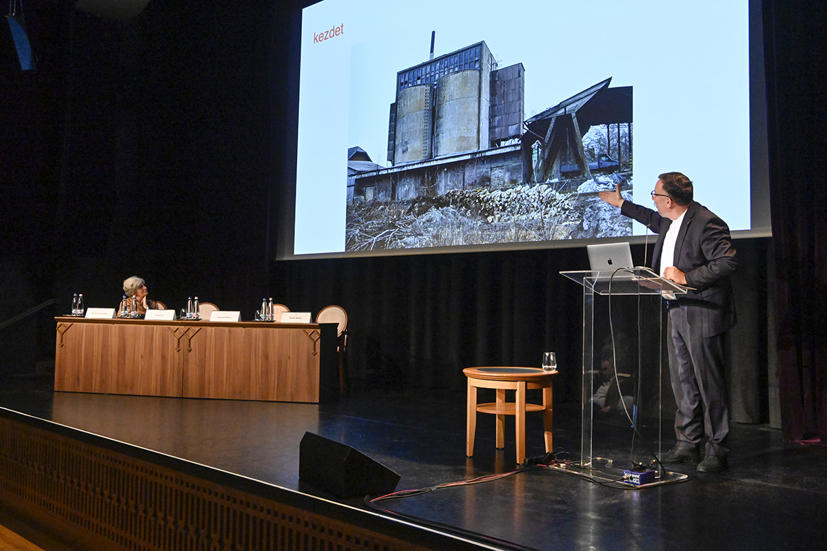 Rácz Zoltán építész arra hívta fel a figyelmet, hogy a rajzban gondolkodó Csete György terveiben miképpen tükröződik személyisége, elsősorban a természetes erőhatásokat közvetítő Forrásházban.