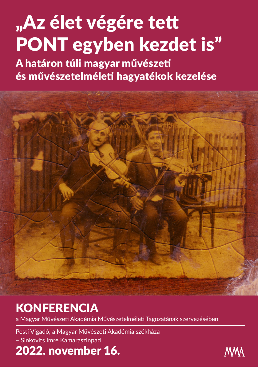 „Az élet végére tett PONT egyben kezdet is" – ez a Terényi Ede erdélyi zeneszerző-zenetudóstól származó idézet adta a címét a Magyar Művészeti Akadémia Művészetelméleti Tagozata konferenciájának a határon túli magyar művészeti és művészetelméleti hagyatékok kezeléséről, november közepén, a Pesti Vigadóban, az MMA székházában. Bevezetőjében dr. Solymosi-Tari Emőke zenetörténész, akadémikus, a tagozat vezetője elmondta: a rendezvény egy tematikus konferenciasorozat része, amely a határon túli magyar művészet és művészeti kutatás kérdéseivel foglalkozik. Az MMA számára a hagyatékok gondozása kiemelt kérdés, ezért került fókuszba ezúttal éppen ez a téma.