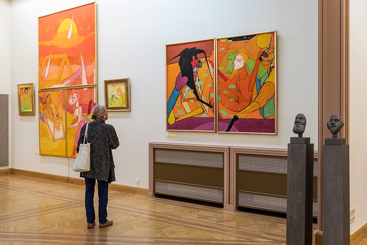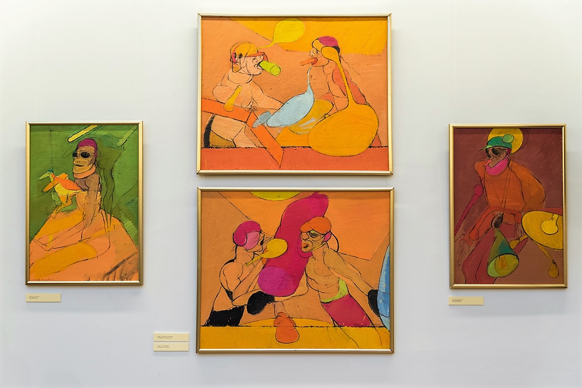 Jelen tárlat akár életmű-kiállításként is értékelhető, amely azonban csak részben szól a jubileumnak. Sokkal inkább az arra érdemes életműnek, annak az alkotó által is legfontosabbakként számon tartott darabjainak. Szól a közel fél századnak – a válogatott anyag időkerete ettől szűkebb; az arányaiban is tekintélyes életműből, az egyes pályaszakaszokból csupán szemezget a tárlat –, amely művek és műsorozatok, festett-rajzolt és plasztikai alkotások folyamát hozta el. Valahogy mindig a költészet és egyéb társművészetek közvetlen közelében, a vonal és a szín, különös helyzetek és látomások társaságában, miként ezt a Részeg Rembrandt (2012), Gilles-bohóc (2005) vagy az Orpheus személye köré fonódó művek mutatják.