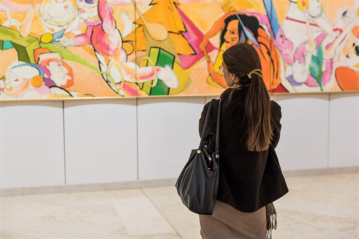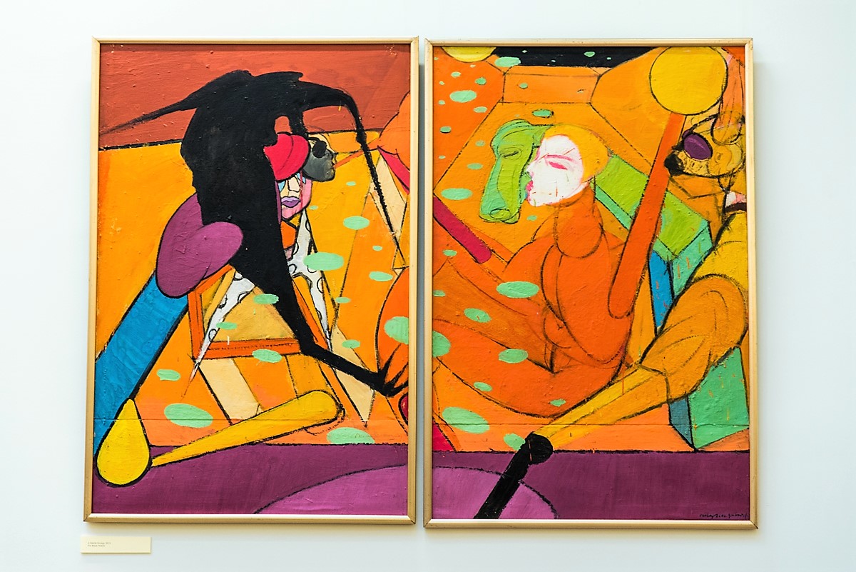 Mással aligha összetéveszthető rajzos festmények, sűrűn szálazott asszociációkkal terhelt, groteszk vagy ironikus figurák és a látomás formákká-színekké csupaszodó, vonalakba kapaszkodó geometriája – Véssey Gábor festőművész alkotóvilága ilyen vagy hasonló jellemzőkkel illethető. A Vigadó Galéria 6. emeleti két termében rendezett kiállítása különleges alkalom. Elsősorban és természetesen a jubileum miatt, hiszen az alkotó 70 éves. Másrészt azért, mert a tárlat olyan lehetőséget nyit meg, amelyben a nagyobb léptékű, sőt több méter kiterjedésű vásznakban is gondolkodó alkotó csak ritkán részesülhet: együtt láthatja ezek többségét, csaknem összességét.