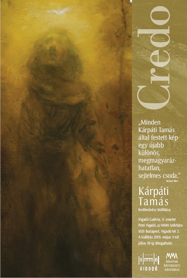 Credo címmel a Pesti Vigadó 2019 májusában rendezi meg – a patinás intézmény ötödik emeleti kiállítótermében – a hetvenesztendős Kárpáti Tamás festőművész kiállítását. A tárlaton a művész mintegy hatvan, a közelmúlt három évében készített táblaképe, tíz bronzba öntött kisplasztikája, valamint az életművet kísérő dokumentumok együttese kerül közönség elé. A Kárpáti-oeuvre legutolsó alkotóperiódusának művészi termését bemutató kiállítás révén a jelenkori magyar képzőművészet egyik legkarakteresebb, önálló arculatú piktúrát teremtő festőművészének alkotói portréja rajzolódhat meg, a kortárs magyar festészet egyik kimagasló jelentőségű, különleges értékekben gazdag teljesítménye körvonalazódhat.