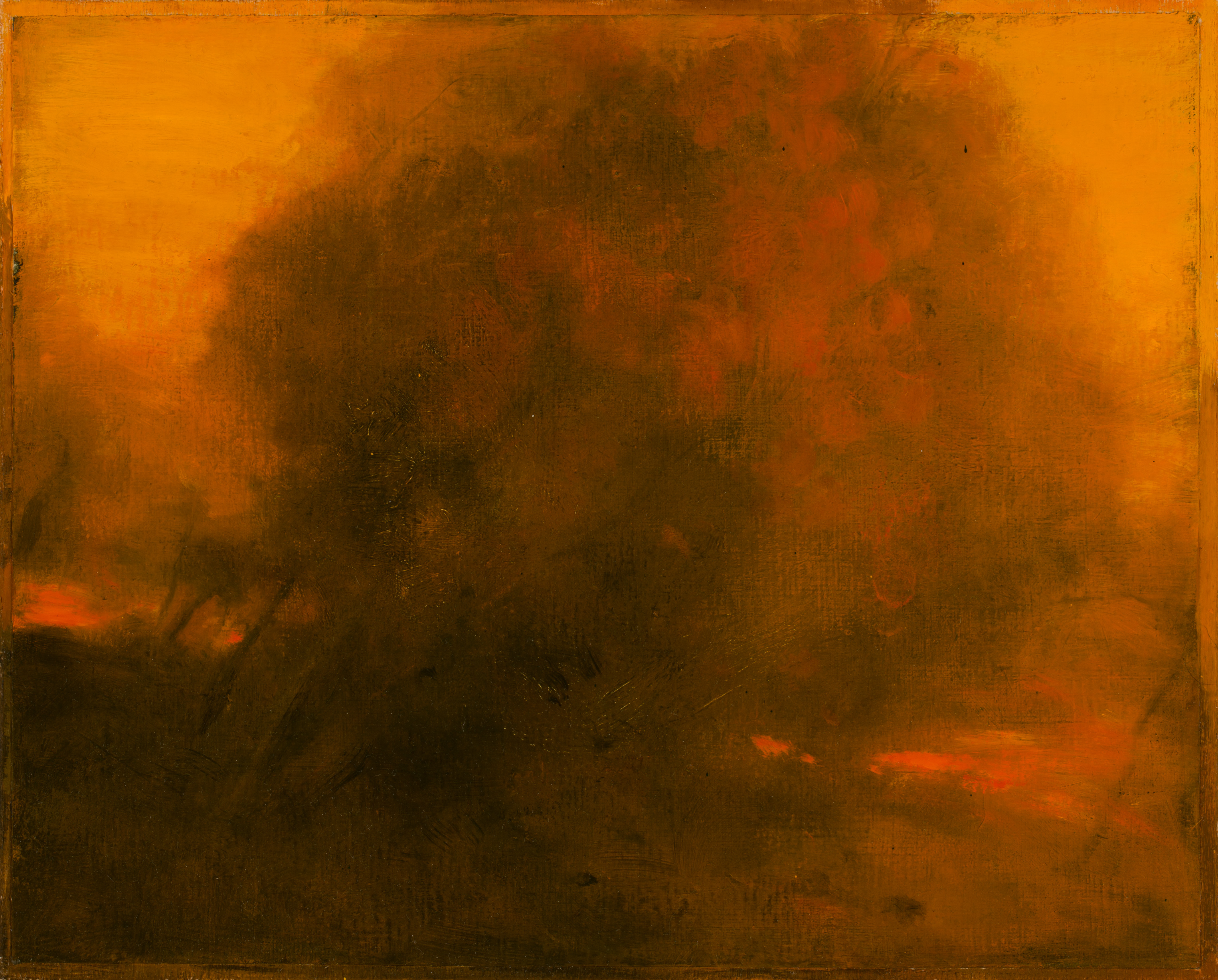 Kárpáti Tamás: Cseres (2018, olaj, papír, fa, 25×31 cm)