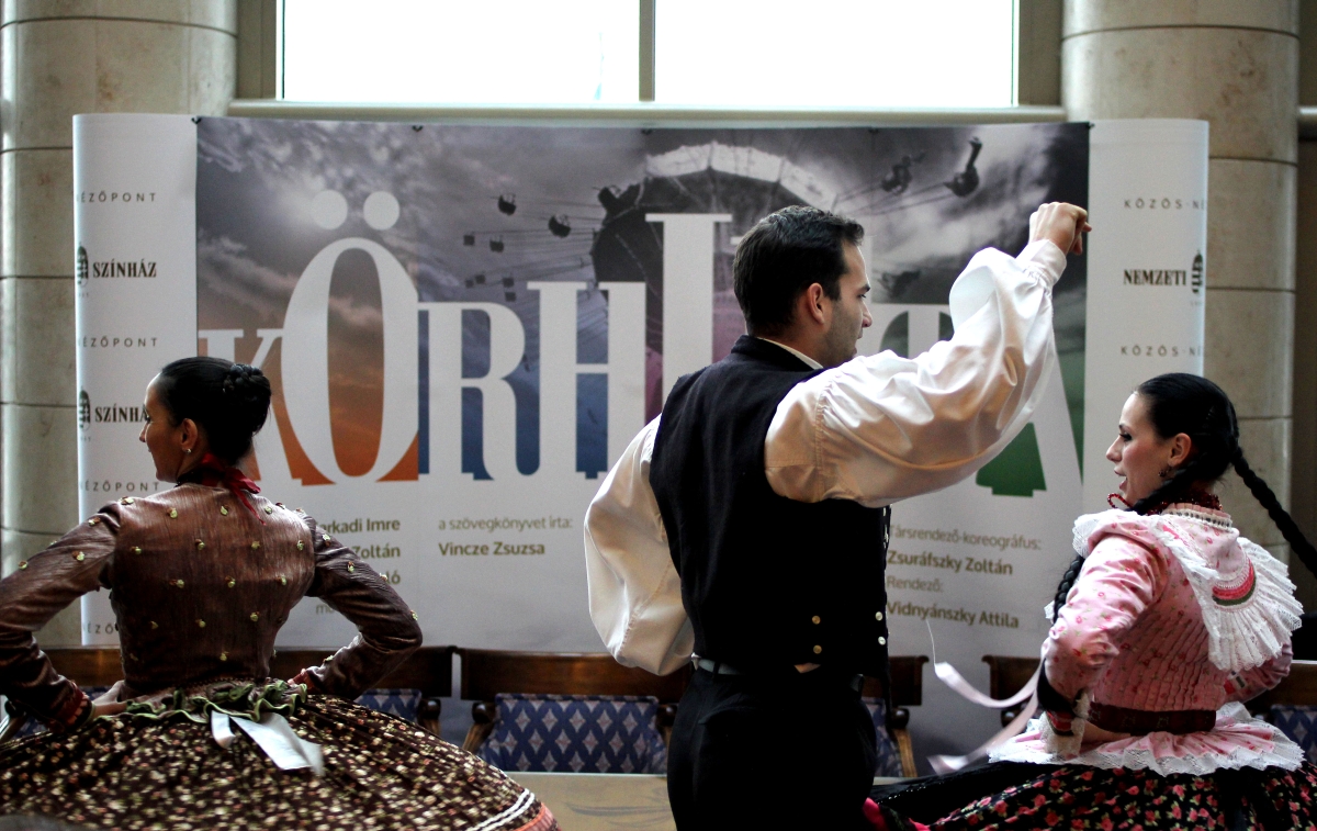 Az előadásban a drámai játék mellett nagy hangsúlyt kap a néptánc. Erről a Kossuth-díjas Zsuráfszky Zoltán vezette Magyar Nemzeti Táncegyüttes társulata gondoskodik, akik a sajtótájékoztatón fellelkesülve adtak ízelítőt produkciójukból. „Számunkra is megtisztelő, hogy a Nemzeti Színházzal közösen vihetjük színre a Körhintát – mondta el Zsuráfszky Zoltán. – Eredetileg táncszínházi produkcióra készültünk és valószínűleg az is marad, ha Vidnyánszky Attila személyben nem találunk szövetségest ahhoz, hogy ennél merészebbet álmodjunk. Negyven táncossal és hat zenésszel veszünk részt az előadásban. Nem akarjuk legyőzni Fábri Zoltán csodálatos filmjét, mely szereplőivel – Soós Imrével, Szirtes Ádámmal és Töröcsik Marival – együtt mindenkinek a lelkében eleven. Hanem a szerelem és a repülés erejét kívánjuk bemutatni a tánc, népzene és a színház nyelvén. Felkérésünkre komponált zenét a darabhoz Lakatos Róbert, aki a kassai Thália Színház zenei vezetője. Reménykeltő az, ahogyan a közös munka elkezdődött a Nemzeti Színház művészeivel. Különösképpen a Cserhalmi Györggyel való újbóli találkozás, hiszen számos film és előadás emléke fűz össze kettőnket."