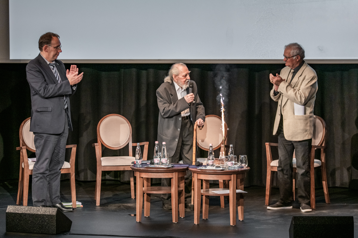 A Magyar Művészeti Akadémia Színházművészeti Tagozata szervezésében megvalósuló esten Borbély László író születésnapi laudációjának elhangzása után a tagozat nevében Székely László díszlettervező köszöntötte Bertalan Tivadart. Mint kiderült nemcsak pályatársakról van szó, hiszen Székely László, aki főként színházak felkérésére tervezett és tervez díszleteket, mindössze két évvel fiatalabb és ugyanazon a napon születtek, így a közönség fogadótapsa őt is köszöntötte. Borbély László laudációja elolvasható itt.