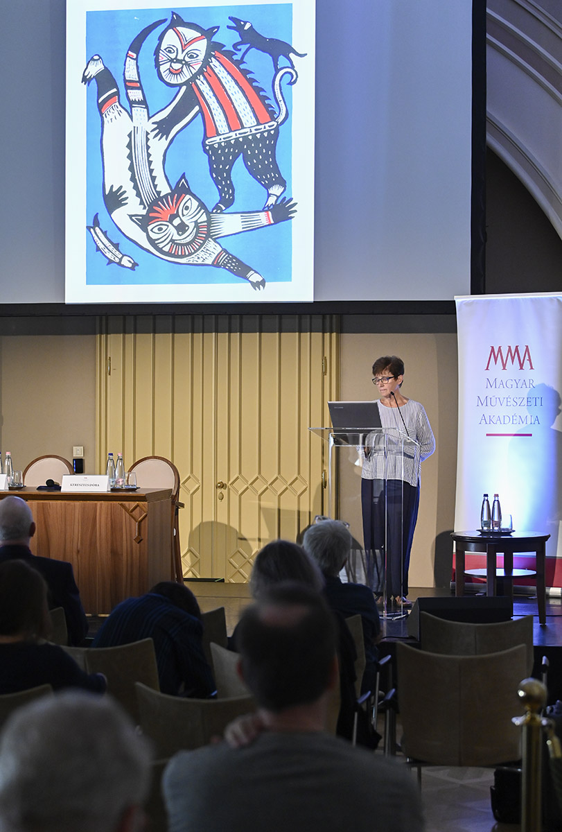 Népművészeti ihletésű munkák mellett számos kortárs magyar költő művéhez is készített grafikákat, kiemelte Weöres Sándor, Kormos István, Szilágyi Domokos, Nemes Nagy Ágnes, Ratkó József, Buda Ferenc, Kányádi Sándor, Kiss Benedek, Nagy Gáspár, Kiss Anna nevét és műveit, amelyeket igyekezett egyenrangú alkotóként közelebb hozni az olvasókhoz. A művésznő kifejtette, hogy Weöres Sándor a „Holdbeli csónakos" Nemzeti Színházbeli előadásához is készített plakátot, valamint a színházi előadás látványtervét is ő találta ki. Díszleteket, jelmezeket, bábokat tervezett, animációs betéteket készített, amelyekkel az egyes jeleneteket össze lehetett kapcsolni. A székfoglaló előadás a De profundis rövid animációs film vetítésével fejeződött be. A film parányi sejtosztódásból növekszik fel egy élő, hömpölygő, egymásba alakuló képfolyammá.