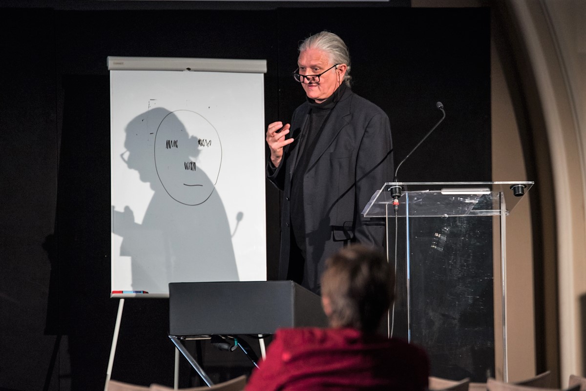 Dr. Szeifert Judit laudációjában rámutatott: Baksai József művészetének kulcsszava a dualitás, az alkotói módszerében, az ábrázolt témákban és az alkalmazott technikákban egyaránt megnyilvánuló kettősség. A művészettörténész az akadémikus alkotásain keresztül elemezte azt a gazdag asszociációkra épülő látásmódot, amely Baksai József az antik mitológia szereplőit, az ókori görög, egyiptomi vagy krétai történetekre utaló motívumokat, illetve az Ó- és Újszövetség mozzanatait, szimbolikus alakjait is megjelenítő művészetét jellemzi. Dr. Szeifert Judit kiemelte a képzőművész képtárgyaiban fellelhető, az elsővel látszólag ellentétes értelmezés szerepét is, amely a művek első megközelítésében megnyilvánuló momentumokban nem látható. Mint elmondta: a művész a címadással és komplementer fogalmakat felidéző asszociációs módszerével is irányítja a befogadói folyamatot az alkotó számára lényeges jelentéstartalom felismeréséig. A laudátor a fentiekből fakadóan az akadémikus grafikái, visszafogott színvilágú finom rajzai és rusztikus felületű, expresszív hatású, sokszor kontrasztos színekből épülő festményei között fellelhető ellentmondásról és alapvető párhuzamokról fejtette ki gondolatait. Az ellentmondás feloldásának kulcsát magában a művészben, a parányi és az óriási, a kint és bent, a lent és a fent, vagy éppen a profán és a szakrális közötti közvetítő szerepében fogalmazta meg. Dr. Szeifert Judit meglátása szerint Baksai József egyszerre összeköti és el is választja ezeket az egymás pandanjainak számító, de lényegében közös tőről fakadó fogalmakat. Szinte egész életműve alapvetően az élet és halál dualitásáról szól, amely gondolatkör legkonkrétabban az ezt feldolgozó képeiben, sorozataiban jelenik meg – tette hozzá. Baksai József székfoglaló előadásának bevezetésében – választott témájának mintegy kiindulópontjaként – megosztotta a hallgatósággal korai képeiről vallott gondolatait: többnyire egy formát, egy központi gondolatot ábrázolt alkotásain, majd a későbbiekben kompozíciói mind formailag, mind tartalmilag összetettebbé, bonyolultabbá váltak, egy bizonyos egyszerűség megtartása mellett. Az akadémikus ennek a folyamatnak a meghatározó íveit, számára fontos eligazodási pontjait vázolta fel, önmaga által is bevallottan új felismeréseket megajánló, kereső, kutató felfedezésként értékelve a fentieket. A kép felületéről szólva a centrális és periférikus látás elemzésén keresztül definiálta a látást, mint tevékenységet. Inspirációként Kepes György szavait hívta, melyek szerint „… a látás a szem munkafolyamata. A kép felépítése nem egyéb, mint különböző optikai momentumok - színárnyalat, tónusérték, telítettség, textúra, helyzet, forma, irány, távolság, nagyság - lemérése és összefüggésük megteremtése." Baksai József meglátása szerint a tevékeny szemnek egyaránt fontos az akció és a nyugalom, véleménye szerint ezek egyensúlyára érdemes tekintettel lenni. Az akadémikusnak a látás fogalmi meghatározásának keretei közé az akciót és nyugalmat, mint két ellentétes pólust beemelő mondatai izgalmas reflexiónak tűnhettek a hallgatóság számára Dr. Szeifert Judit laudációjában kifejtett, Baksai József alkotásaira jellemző ellentétes értelmezésekre vonatkozóan. Baksai József a továbbiakban az egyetlen egységként megjelenő kompozíciót, az egyetlen formát, mint az ábrázolás legegyszerűbb változatát elemezte, hozzátéve, hogy az egyetlen egység az esetek többségében zárt kompozíciót eredményez, az erővonalak a kép keretein belül lévő központi elem felé mutatnak. A statikus, zárt kompozíció nyugalmat áraszt, mentes a nagy változatosságtól és nem érzékeltet mozgást. Korai alkotásairól elmondta, hogy azok megszületésében az emberi arc- és koponya ábrázolások kiemelt szerepet játszottak. Felhívta a figyelmet arra is, hogy Platón Timaios című művében az emberi fejet, mint az emberben a legistenibbet határozza meg. Az akadémikus fontosnak tartotta hangsúlyozni Leonardo da Vinci intelmét a festőkhöz, mely szerint a mester elszíneződött vagy érdes falfelületben felimerhető emberek, állatok, fák és egész csatajelenetek meglátására, illetve a harangszóban hallható más nevek és szavak megfigyelésére ösztönözte alkotótársait. Baksai József kiemelte: az arcfelismerési képesség azért is fontos, mert többnyire arcuk alapján azonosítjuk az embereket, az emberi arc ideális kép és szociális szempontból is az egyik legfontosabb inger. A képein használt szimbólumok jelentését a középkor keresztény indíttatású festészetére vezette vissza, amelyeken az ábrázolt alakok és történetek értelmezéseként általánosan ismert szimbólumok is megjelennek. A XX. században a némafilm korszakában Kulesov és Eizenstein is használta ezt a megoldást, elméletileg is kidolgozták a képmezőben megjelenő tárgyak, alakok egymás jelentését módosító értelmezését, a tudatos montázs technikáját. Baksai József utóbbi éveiben készített akvarelljen gyakran használta a jelentés finomításának, átértelmezésének ezt a lehetőségét. A koponyáról szólva a bűnbeesés és a megváltás összefüggését hangsúlyozta. Miután egy-egy témát és motívumot többször, többféleképpen is feldolgozott (pl. 'Empedoklész'), így többek között a koponya is különböző kontextusokban jelent meg alkotásaiban. A fentieken túl az alamizsnás vagy kolduló tálak szimbolikájáról és a Minótaurusz-legenda megjelenéséről hallhatta gondolatait a közönség. Összegzésében az akadémikus elmondta: a kezdet egyben a vég is, művészetének egyik alapvető 