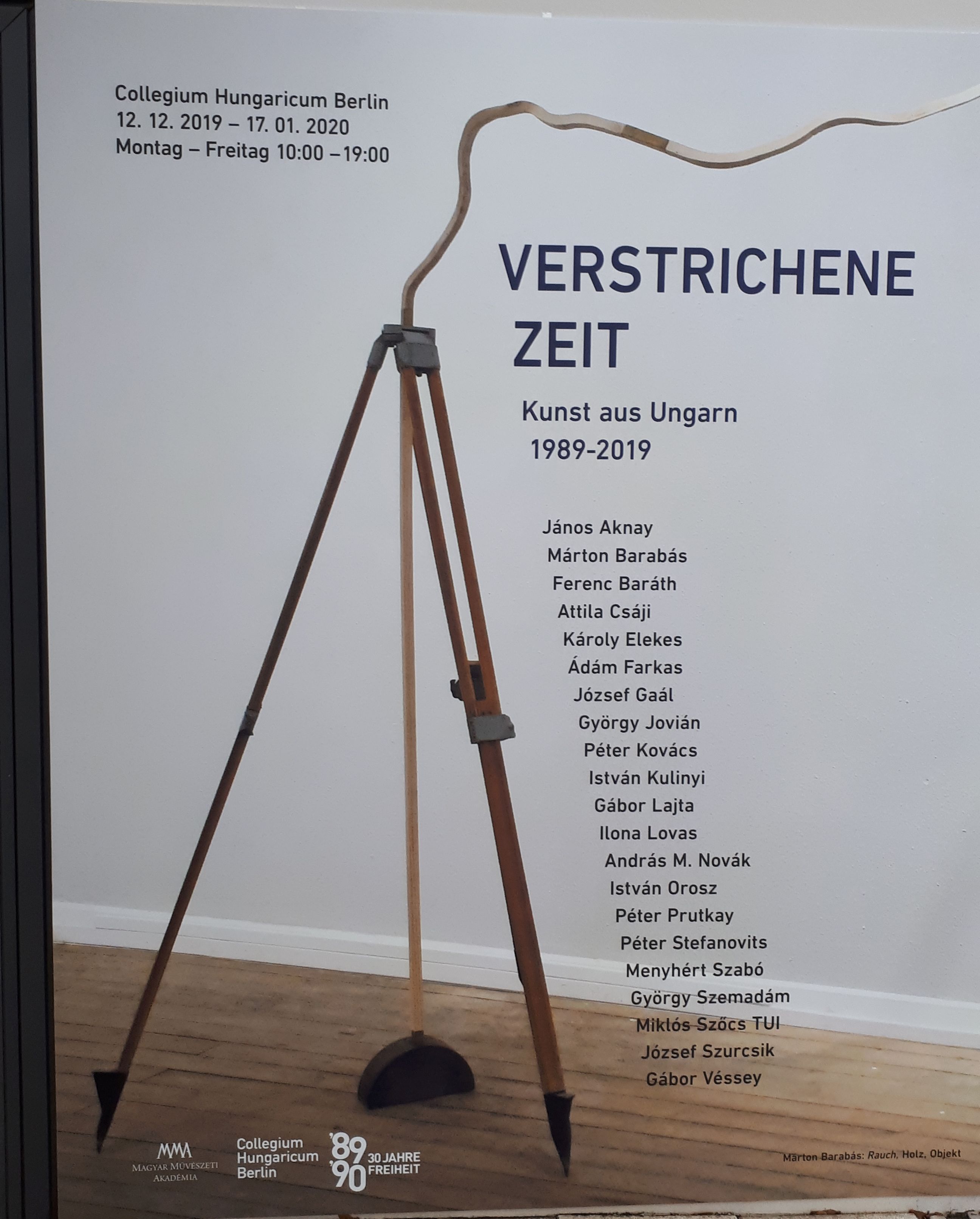 Passau és Stuttgart után Berlinben is bemutatják az 1989-es magyarországi határnyitás harmincadik évfordulója alkalmából Verstrichene Zeit – Elfolyó idő címmel rendezett kiállítást, amelyen a Magyar Művészeti Akadémia képző- és tervezőművészeinek munkái láthatók, a tárlat 2019. december 12-én nyílt meg a német főváros magyar kulturális intézetében, a Collegium Hungaricum Berlinben (CHB). A 30 éve szabadon emlékév keretében létrehozott kiállítást Vashegyi György, az MMA elnöke nyitotta meg, majd a Collegium Hungaricum Berlin igazgatója, dr. Nagy Márta köszöntötte a jelenlévőket, ezt követően pedig Dr. Josef Böhm, erdélyi származású műgyűjtő intézett beszédet a közönséghez, melynek soraiban a berlini kiállítás alkotói közül Jovián György és Lovas Ilona, az MMA akadémikusai is jelen voltak.