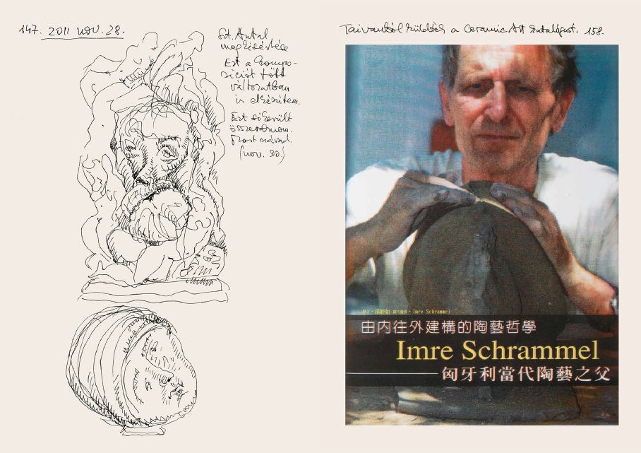 A Dvorszky Hedviggel folytatott kötetlen beszélgetés során Schrammel Imre felelevenítette életének néhány kevésbé ismert epizódját. Elmesélte például, hogy a Magyar Iparművészeti Főiskolán folytatott tanulmányait követően – ahol is elsajátította a klasszikus kerámia-készítés mesterségét – a Hollóházi Porcelángyár munkatársa lett. Mindez az 1950-es évek második felében történt. Hollóházán azonban Schrammel Imre porcelánosként olyan művészeti kísérletekbe kezdett, amely nem illeszkedett az akkor egyeduralkodó szocreál stílusba. A kísérleteknek aztán az lett a következménye, hogy Schrammel Imrét – mint mondta – „páros lábbal kirúgták". Hozzátette: később is „többféle eljárással kísérleteztem. Elsősorban azt az ősi állapotot kerestem, amely az ősembert is körbevette". Dvorszky Hedvig szerint „Imre kiválóan tud mintázni. Az igazi 20–21. századi művész világképe jellemző rá".