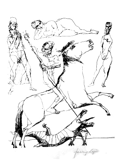 Szalay Lajos: Szent György (litográfia, papír 60 × 43 cm)