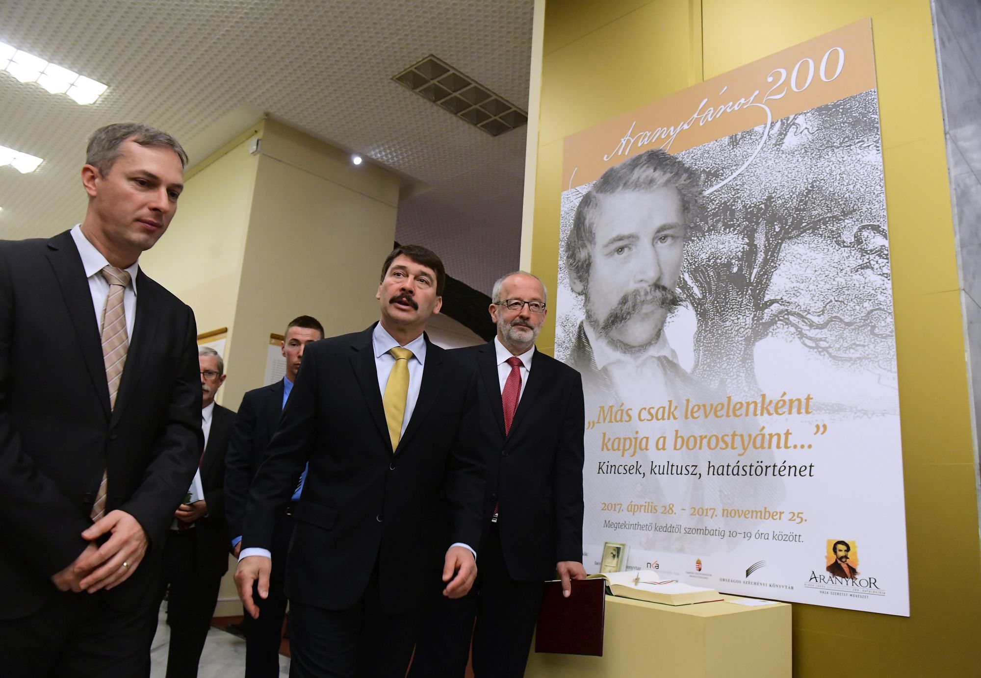 Arany János nem csupán tehetséges alkotó, hanem legfőképpen tisztességes ember volt. A tárlaton látható kéziratokból és dokumentumokból kiolvasható egy bölcs és jó, egyszerre öntudatos és szerény ember alázata a teremtés és a teremtő munka iránt – mondta a megnyitón Áder János köztársasági elnök, aki utalt arra, hogy az OSZK tárlata nem csupán Arany-relikviákat és az Arany-kultusz kialakulásának mozzanatait mutatja be, hanem kortárs magyar alkotók ez alkalomra szánt vallomásait is. Ugyanis az intézmény arra kért száz kortárs költőt, hogy kéziratos formában küldjék el verses reflexióikat a kiállítás számára. A tárlat zárása után ezeket az intézmény kézirattárában helyezik el, és a szövegek egy részét ősszel az Örkény Színházban is bemutatják. Tüske László, az OSZK főigazgatója hangsúlyozta, hogy Arany János életműve nem egy távolról csodálandó robusztus, muzeális műemlék, hanem egy máig elevenen ható, termékenyítő erejű szövegkorpusz.