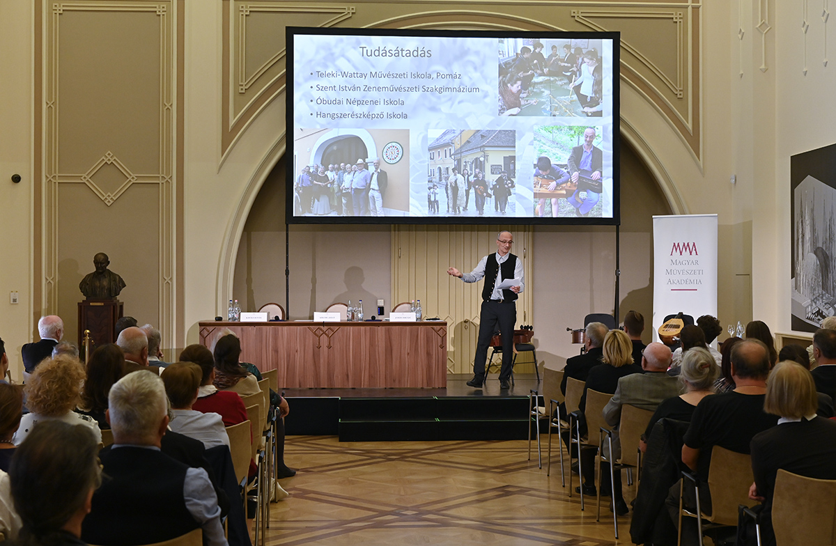 Az MMA székházában, a Pesti Vigadóban folytatódtak akadémikusaink székfoglaló előadásai. Szeptember 3-án 10.00 órától Szerényi Béla előadóművész, hangszerkészítő mester, az MMA levelező tagjának előadását hallgathatták meg az érdeklődők A teljesség körül címmel.