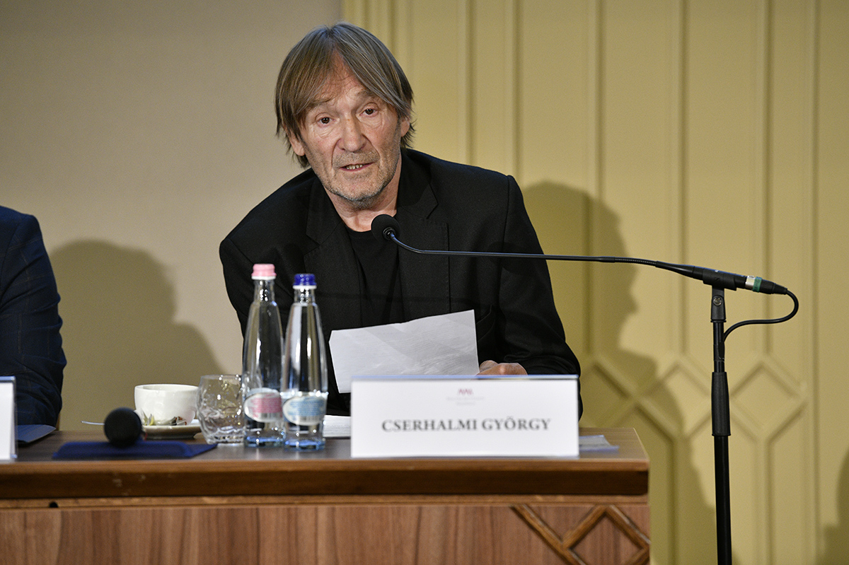 Ezután Cserhalmi György a Nemzet Színésze, Kossuth- és Balázs Béla-díjas színész, érdemes művész, megtartotta „Állj, ki vagy!" címmel székfoglaló előadását, amelyben beszélt a személyes pályájáról és közéleti kérdésekről is. Idézte Shakespeare Hamletjének nyitányát: ha az ember már leszámolt minden illúzióval, a kérdés inkább így hangzik: ki voltál? Szubjektív színháztörténeti áttekintésében a szakmai fénykorral kezdte, azzal, hogy a fénykor valóban világított. Az új nemzedéknek, amelyhez ő is tartozott Szolnok és Kaposvár volt a bölcsője. Babarcziék, Székely-Zsámbékiék szerepére utalt. Meghatározó színháztörténeti mozzanatként emlékezett a kaposvári és a szolnoki színház műhelyeiben folyó munkára, és a Katona József Színház alapítására. „1985 után megint készületlenül készültünk történelmet csinálni, pedig az értelmiségnek lett volna ideje átgondolni, mit is szeretne a rendszerváltással." Korábbi mesterére így emlékezett: Székely Gáborral egyszerre lett súlya, hitele a színháznak, és jelentek meg a társművészetek a színpadon. A színművész arról is mesélt, hogy gyorsan és könnyen lett szabad, nem volt benne semmi nosztalgia a korábbi korszakai iránt. „Szép lassan beleriszáltam magam valami sznobéria közelébe, sejtettem, hogy én nem tartozom az elithez, mégis jó volt a közelükben lenni. Székely Gábor hámozta le ezt rólam, ekkor kezdte felülírni bennem a szépelgést az igazságot vagy amit annak gondoltam." A Színház- és Filmművészeti Egyetemről úgy fogalmazott: „Az oktatás okos volt, érzékeny, európai." Cserhalmi György szerint olyan országban jó élni, ahol a politika nem téveszti össze magát a tízparancsolattal, ahol hihetünk magunkban és ahol hisznek nekünk.