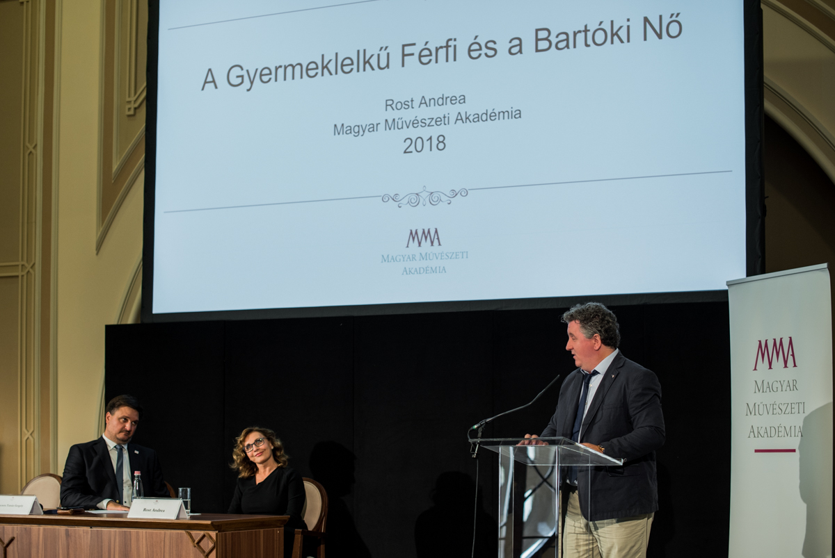 Az MMA székházában, a Pesti Vigadóban folytatódtak akadémikusaink székfoglaló előadásai. Szeptember 13-án 11.00 órától Rost Andrea operaénekes, az MMA levelező tagjának előadását hallgathatták meg az érdeklődők A gyermeklelkű férfi és a bartóki nő címmel. Rost Andrea laudátora Ókovács Szilveszter, a Magyar Állami Operaház főigazgatója; a program levezető elnöke és az elnökség képviselője dr. Kucsera Tamás Gergely, az MMA főtitkára volt.