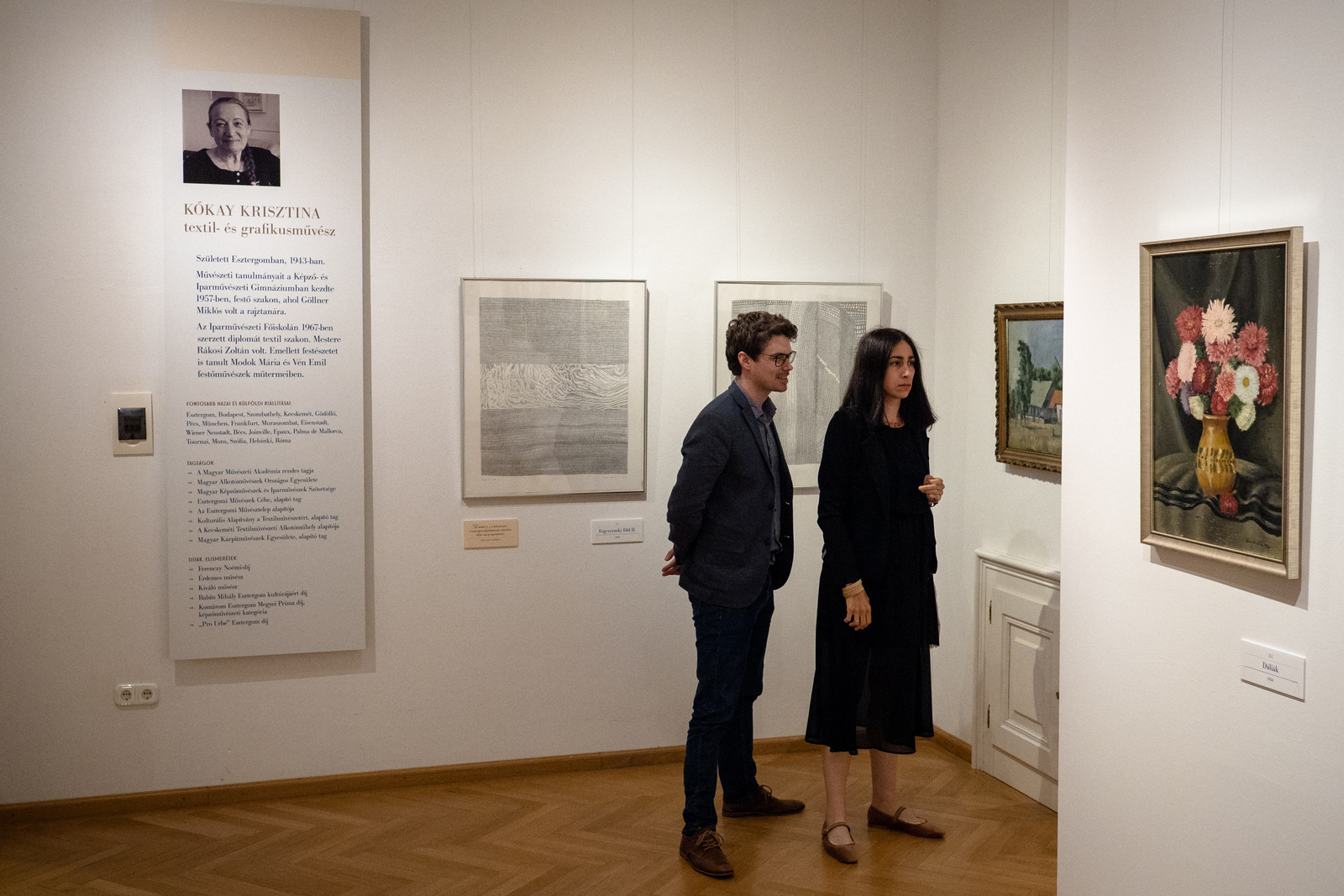 A patinás helyszínen elsőként Hernádi Ádám köszöntötte a 80 éves Kókay Krisztinát. A város első embere egyebek mellett így fogalmazott: „Egy hosszú művészi életút esetében mindig felfedezhető, ahogy visszaköszön a tapasztalat, a tisztánlátás és a bölcsesség. Ezek a jelek egy átlagos ember életében is könnyen észrevehetők, viszont egy művész alkotásait látva, ahogy az évek telnek, ez nemcsak lenyűgöző, de tiszteletet is ébreszt." A kiállításon csaknem hetven kompozíción át, több mint hatvan év munkássága tárul a közönség elé, a korai alkotásoktól egészen a monumentális méretű textilabsztraktokig. A látogatók időrendet követve haladhatnak az életműtárlaton, így elsőként az 50-es években készült festményekkel, grafikákkal találkozunk, melyet kikristályosodott komponálású textilművek követnek.