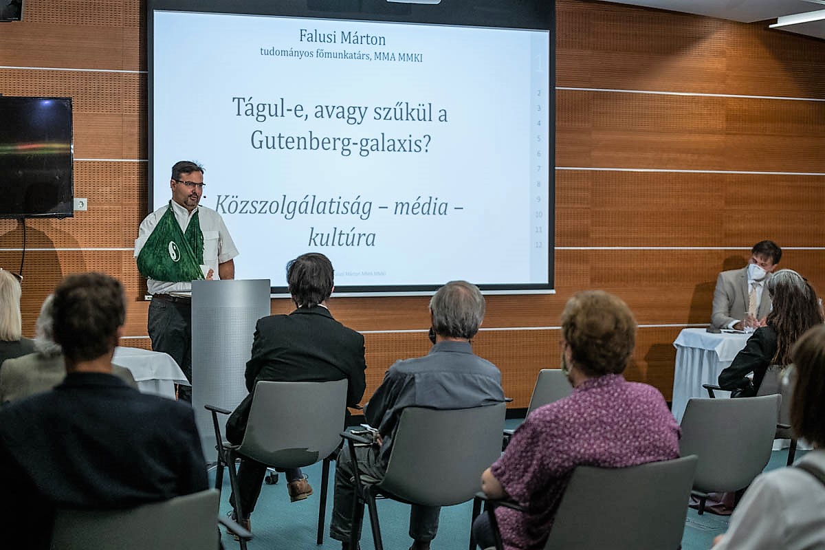 Ezek után Falusi Márton, az MMA Művészetelméleti és Módszertani Kutatóintézetének tudományos munkatársa, a Nemzeti Kulturális Alap Szépirodalmi Kollégiumának elnöke, az Országút című lap főszerkesztője arról beszélt, hogy a kezdetben temetett nyomtatott sajtó kezdi visszaszerezni tekintélyét és olvasottságát az online sajtóval szemben. A tudatos médiafogyasztásról Kiss Anna, a Károli Egyetem hallgatója és Segesdi Gergő az egyetem doktorandusza beszéltek. Témájukban a Nemzeti Alaptanterv média oktatását vizsgálták a fiatalok médiahasználati szokásai mellett. Ugyancsak a különböző médiumok fogyasztásáról és a különböző eszközök használatáról beszélt Nyéki Andrea, a Corvinus Egyetem doktorandusza. Előadásában – a többi között – rámutatott arra, hogy bár a rádiós piacot magasan vezeti, a televíziók és az új média terén jelentősen alulmarad a közmédia. Az új média mellett pedig megjelent az ún. új kultúra is. Erről már Szabó Andrea, az Eötvös Loránd Kutatási Hálózatának főmunkatársa beszélt. Szabó Andrea szerint, a koronavírus-járvány olyan változásokat hozott a fiatal generációk életébe, ami alapjában fogja megváltoztatni társadalmunk szokásait. Példaként említette, a szociális távolságtartás és a maszkviselés hosszútávú hatásait a társadalomra. A kutató szerint a járvány alatt sok szocializációhoz köthető jelenség, mint például az oktatás, részben visszakerült az intézményektől családi körbe, hiszen a diákok több hónapig nem járhattak iskolába. A délután végéhez közeledve Lukácsy György kulturális újságíró, az MMA ösztöndíjasa Sára Sándornak, az MMA néhai tagjának, a Nemzet Művésze címmel kitüntetett kétszeres Kossuth- és Balázs Béla-díjas operatőr, filmrendező életművével és a Duna Televíziónál végzett tevékenységével ismertette meg a hallgatóságot. Végül dr. Solymosi-Tari Emőke, az MMA Művészetelméleti Tagozatvezetője, zenetörténész, a konferencia másik szervezője, a Pastorale sorozat vezetője a kultúra közvetítésnek egy nagyon modern módját fejtette ki. A Pastorale összművészeti program sorozatában ugyanis a legkisebbektől az idősekig mindenki örömét leli. Az előadásban képeket láthattunk fiatalokról, akik tátott szájjal, előredőlve nézik a Szerelmi bájital című opera előadást. A történész jelmondata Freund Tamás szavait idézi: „Nemcsak mindennapos testnevelés kell, hanem mindennapos katarzis is." A katarzis élmény útján érhető el. A kultúra közvetítés legfőbb eszközének tehát az élmény közvetítésnek kell lennie, hangsúlyozta előadásában dr. Solymosi-Tari Emőke. Az élmény és az érték kéz a kézben kell, hogy járjanak. Ez az egyetlen útja annak, hogy a közszolgálatiság elérje célját, és beteljesítse misszióját a nemzet és a kultúra védelmében.