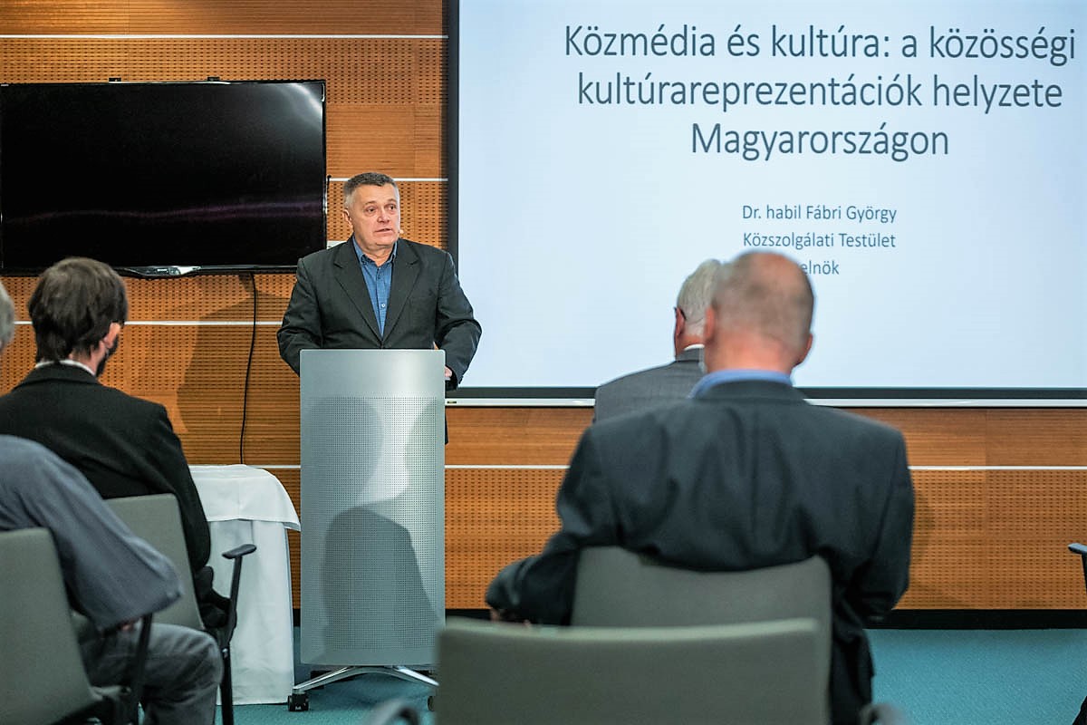 Dr. Fábri György, a Közszolgálati Testület elnöke előadásában arra helyezte a hangsúlyt, hogy milyen nehéz helyzete van a közmédiának a nézettségért vívott versenyben. Az ugyanis, hogy mit nevezünk értéknek és minőségnek megosztja a társadalmat. Hangulatok és hullámverések vannak, ezek ellen a közmédiának saját utat kell mutatni. Fábri György szerint az új média területén rengeteg fejlesztésre van még szüksége a közszolgálatnak, hogy felvegye a lépést a legújabb digitális igényekkel. Jó példaként hozta a Virtuózok, valamint a Fölszállott a páva műsorait, amelyek nagyon jól összehozták a nézhetőséget és az értékközvetítést. Hasonlóan jó példaként említette az M2 gyerekcsatornát, ahol napközben erőszakmentes, klasszikus értékeket közvetítő meséket nézhetnek a legkisebbek. A Közszolgálati Testület elnöke végül hangsúlyozta: a közmédia közös, polgári ügy, csináljuk hát együtt!