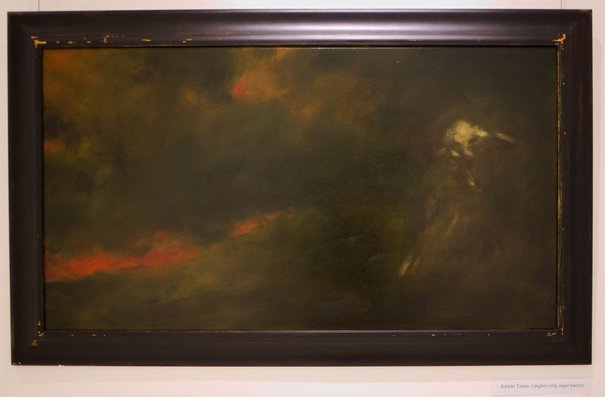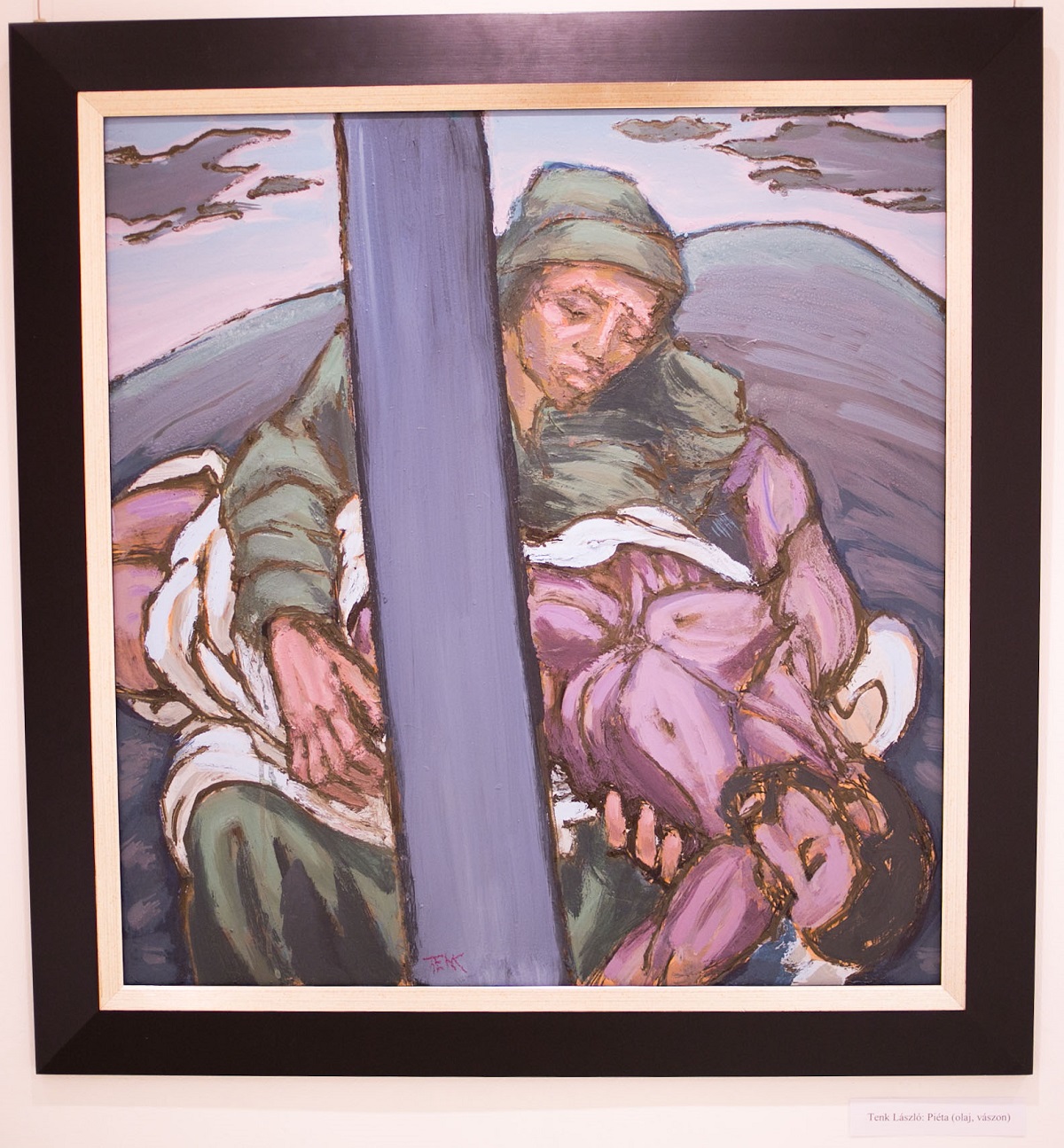Fölismerte a zsenialitást Csíkszentmihályi Róbert groteszk-költői, ember-állat szoborlényeiben, bölcs vadkan-bácsijában, ködös-riadt őzike-asszonyában, ehhez a sorozathoz tartozik az itt lévő győztes-gőgös vízimadár. Láttam Mannát döbbenten állni Muzsnay Ákos ködös pasztelljei előtt, a mélyvörös, barna-szürke barlangfalak előtt lebegő kísértet-alakok előtt, fölismerve a bibliai utalást: „És kijöve a megholt, lábain és kezein kötelekkel megkötözve és az orcája kendővel vala beborítva." (J.n. 11.44) Ezek az alakok költöztek fehér márvány domborműbe itt.