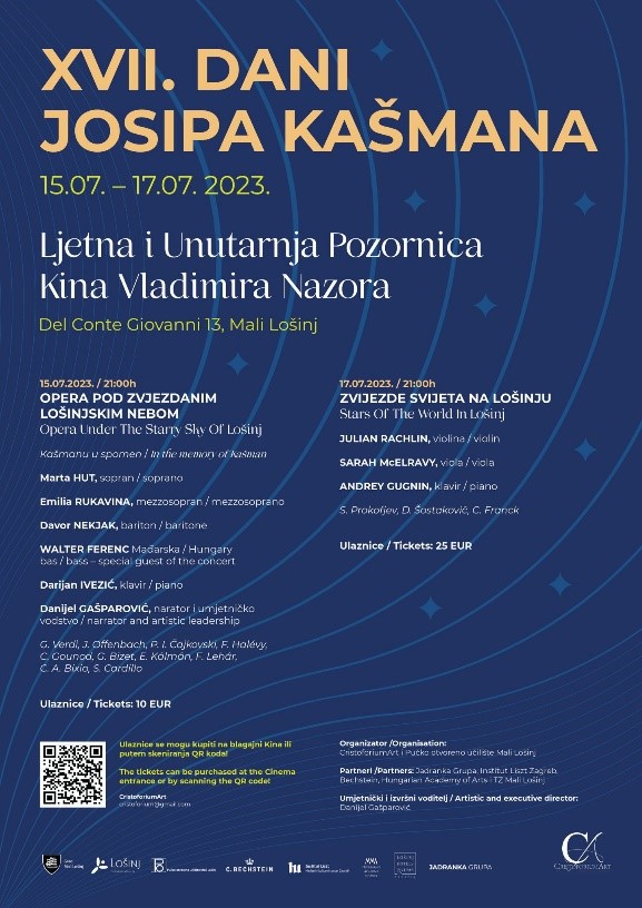Horvát operaénekesek – Marta Hut, Emilia Rukavina, Davor Nekjak – és magyar partnerük, Walter Ferenc előadásában hangzottak el Verdi, Csajkovszkij, Bizet, valamint Kálmán Imre és Lehár Ferenc művei a Josip Kasman Fesztiválon. A Liszt Intézet – Magyar Kulturális Központ Zágráb közreműködésével megvalósuló programot „losinji csillagos ég alatt" mottóval hirdette meg a Cristoforium programiroda. Danijel Gasparovic művészeti vezető megnyitó beszédében kiemelte: a Magyar Művészeti Akadémia támogatta törekvésüket a magaskultúra bemutatására ezen az illusztris helyszínen.