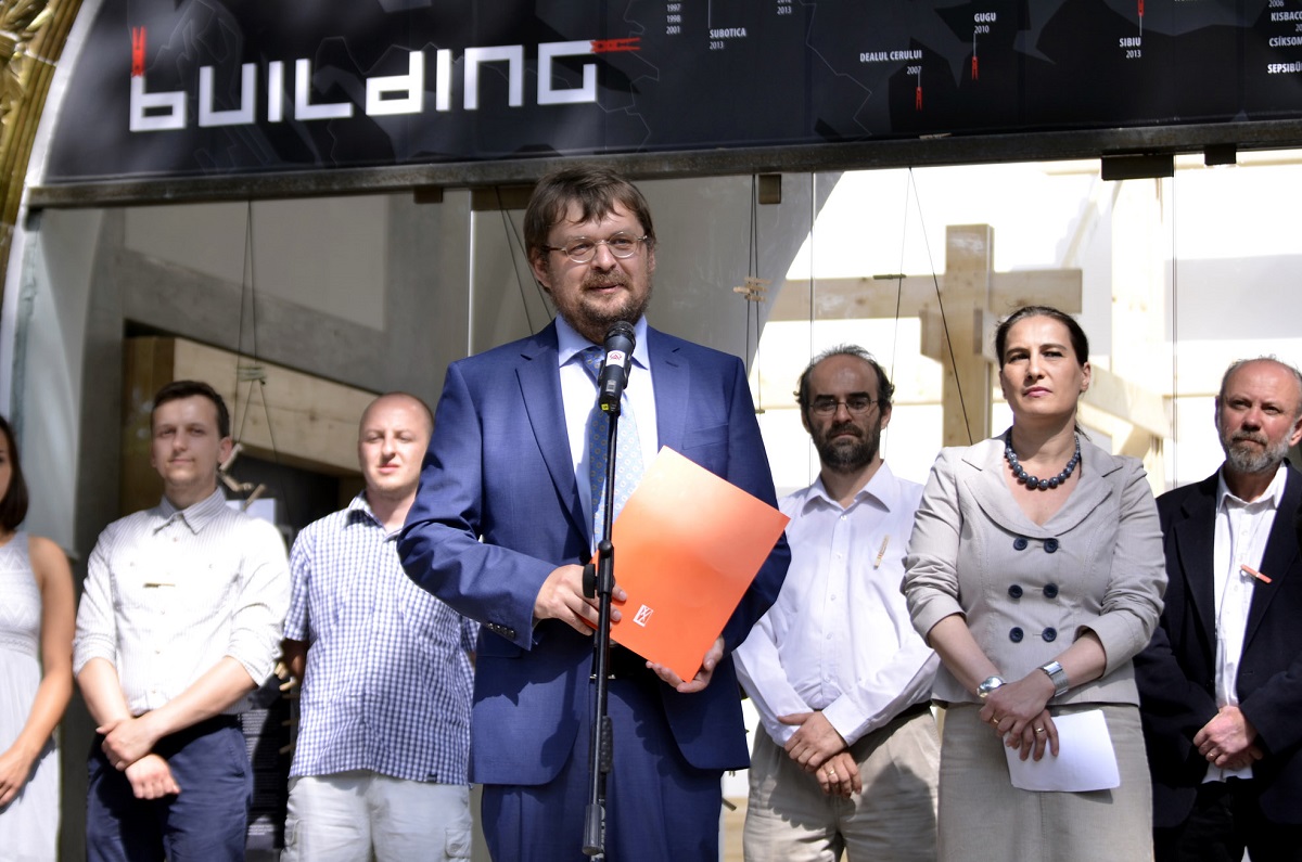 Az építés mindig több, mint a nem építés. A kalákaépítést dokumentáló fotókon kemény kezeket látunk, önfeledt, derűs hangulatot – ezek az építésre hívják fel a figyelmet, a tudás fontosságára, az összefogás révén létrejövő építmény nagyszerűségére. Kunkovács László fotósorozata is arra hívja fel a figyelmet, hogy a legegyszerűbb anyagokból is elő lehet állítani a népi építészet sajátos remekeit, ami bizonyítja, hogy a szükséghelyzet milyen kreativitásra képes sarkallni minket. Az előtérben továbbá olyan maketteket is láthatunk, melyek egy tér hasznos berendezésére adnak jó példát: a temesvári diákok Szakállszárítója a közösségépítésre helyezi a hangsúlyt. Ugyanők a Giardinibe több padot is elhelyeztek, összesen hat darabot – ezek a kétkezi munka szépségét is hirdetik.