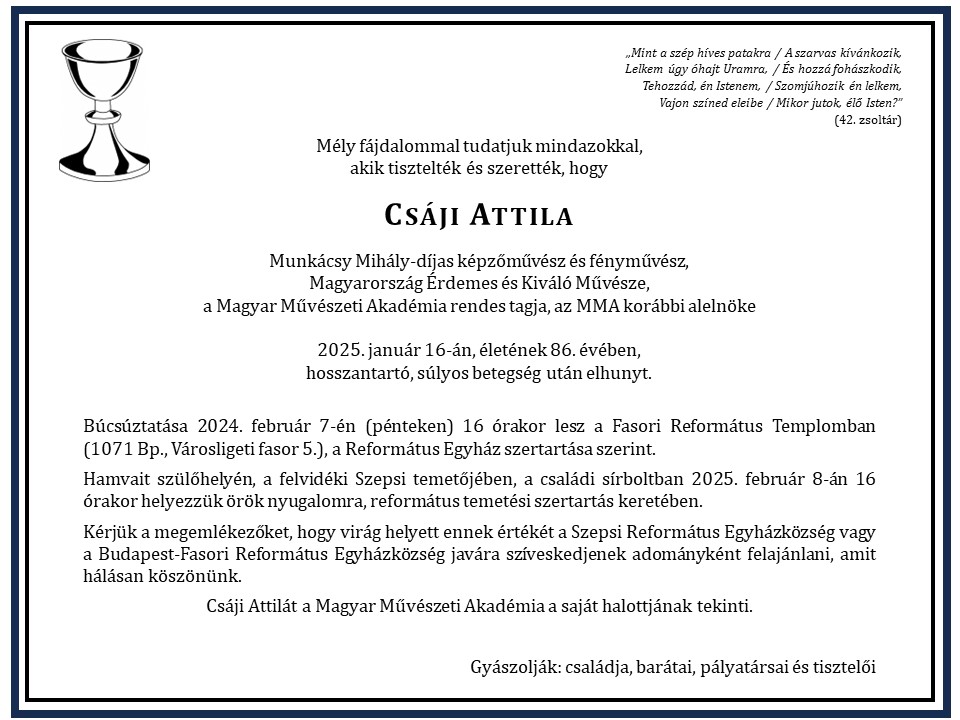 Csáji Attila festőművész életművében alapvető szerepet játszik a fény fizikai és szellemi dimenziója.