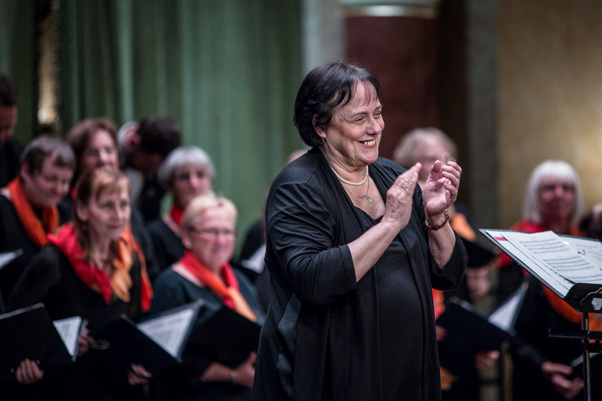 Utána ismét különböző hangulatú darabok következtek. A Cavalcando szonettet Dante „La Vita Nuova" című versciklusából Eősze László választotta ki és Nagy Márta kérte megzenésítését, mivel olaszországi turnéra készültek a törökbálinti Cantabile Vegyeskarral. Mindez alig hat esztendeje történt. Az akkor 89 esztendős szerző rövidesen elkészült a művel, s az ajánlás természetesen Nagy Mártának és Vékey Mariann karnagynak szólt. A Cavalcando egyébként azon kevés zenedarabok közé tartozik, amely zongorakíséretes kórusmű. Ezt követte a koncerten a Szeged város felkérésére 2005-ben Rozgonyi Éva Bartók Béla női kara számára írott „Ima alkonyi harangszóra" című darab, melyet később a szerző átírt vegyes karra Kollár Évának és a Monteverdi Kórusnak. A megindítóan szép népi szövegre, a csíkszentdomonkosi imádság soraira írott dallamok után az antikvitásában is mai, időtlenül örök-emberi, életigenlő Anakreóni dal következett: „Gyere, boldogan borozzunk!" A három művet a Budapesti Monteverdi Kórus előadásában hallhattuk. Szőnyi Erzsébet szerzői estjét végül egy nagyszerű vegyes kari, fúvós kvintettel kiegészített kánon koronázta meg: „Kívánjatok békét Jeruzsálemnek!" A 122. zsoltár szövegére komponált, korunkban is időszerű mű megírására Szőnyi Erzsébetet harmadik szentföldi utazása ihlette. A Budapesti Monteverdi Kórus tagjai és a Szent István Király Szakgimnázium fúvósai adták elő Kollár Éva, a MMA rendes tagja vezényletével.