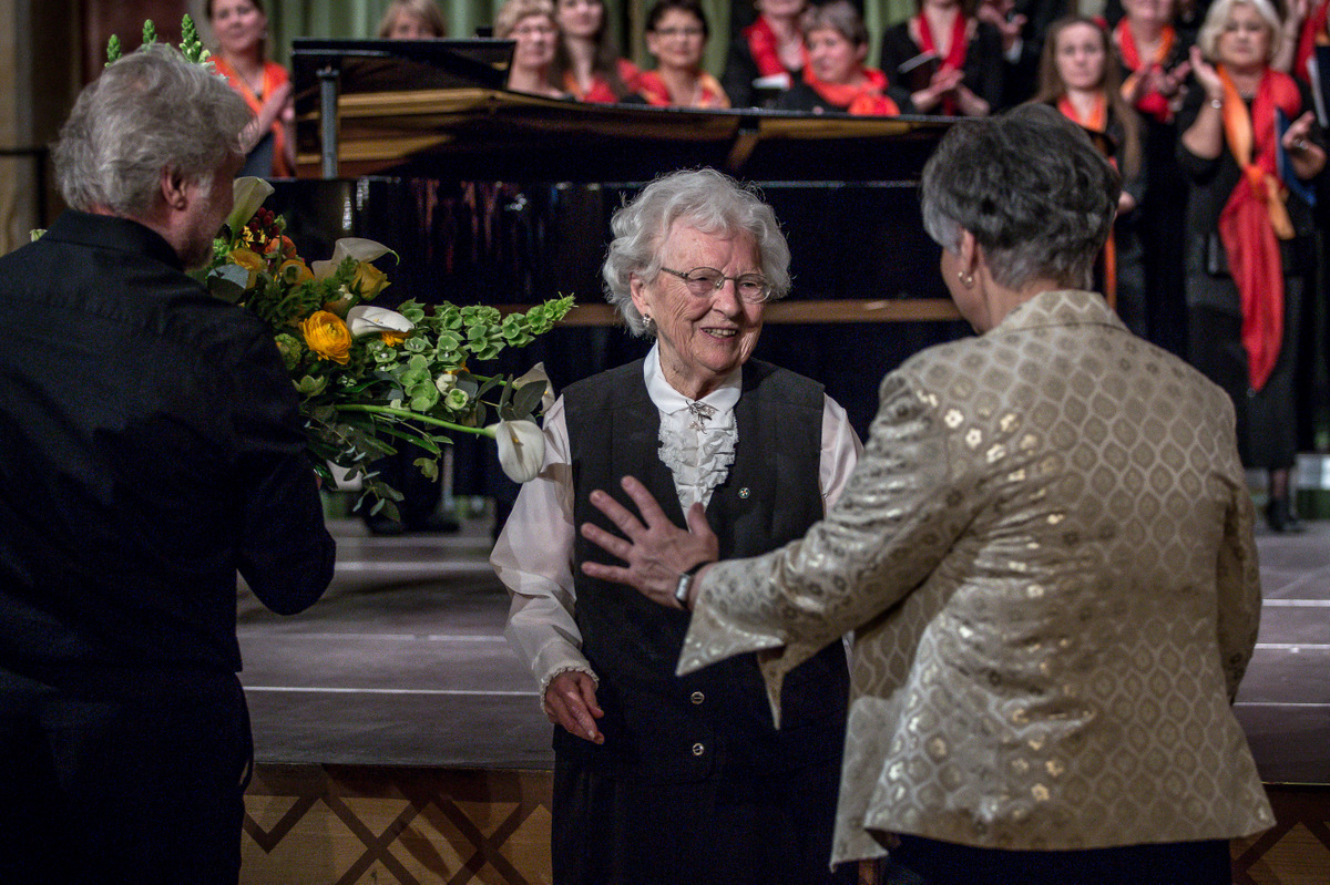 Fekete Péter, az Emberi Erőforrások Minisztériuma kultúráért felelős államtitkára prof. Kásler Miklós miniszter üzenetét olvasta fel: Szőnyi Erzsébet személyében olyan zeneszerzőt, zenepedagógust, karvezetőt köszönthetünk születésnapja alkalmából, aki egész életét a zenének, a művészetnek szentelte, mindezt a munkásságát átható töretlen magyarságtudattal, alázattal és hittel. A tanítvány tökéletesen megfelelt tanítómestere, Kodály Zoltán örökségének, Szőnyi Erzsébet egész életében küldetésének tekintette Kodály zenepedagógiai elveinek hirdetését. Fekete Péter az ünnepségen ezután miniszteri köszöntő oklevelet adott át Szőnyi Erzsébetnek.