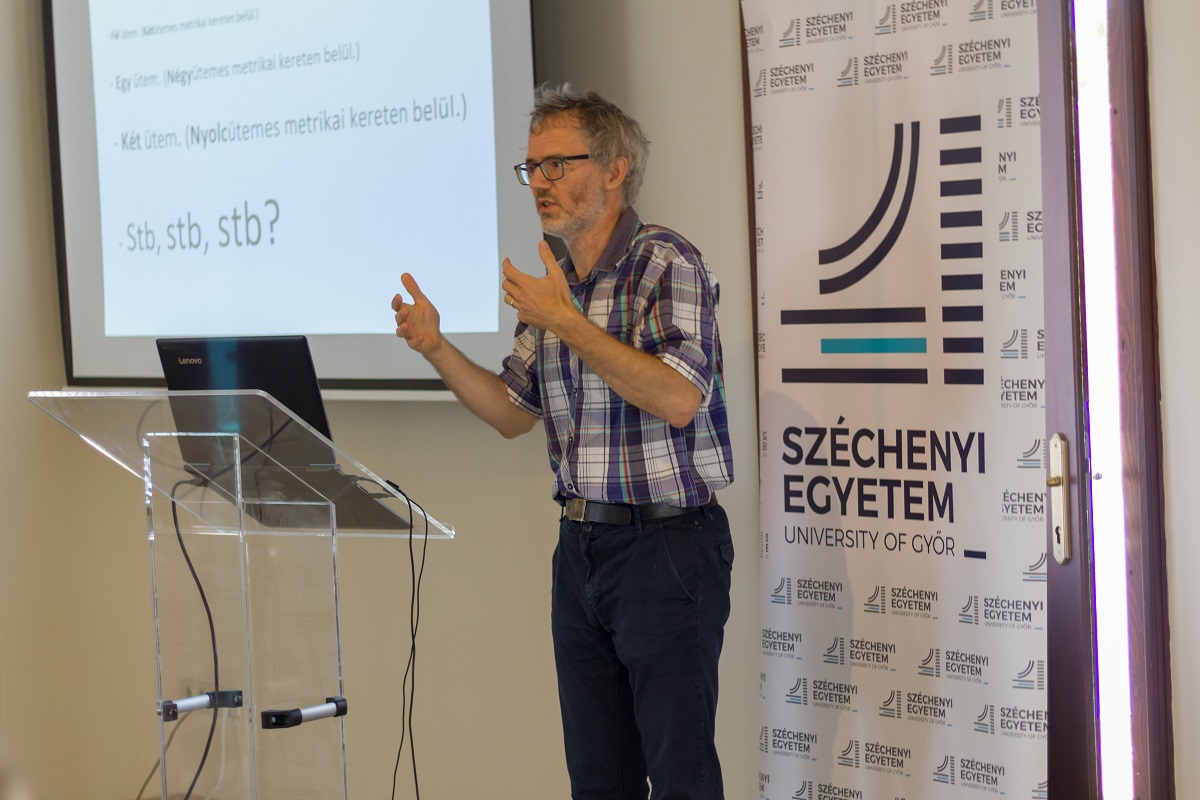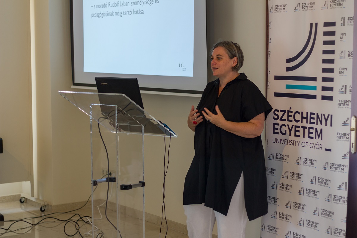 Szabó Adrienn, a Széchenyi István Egyetem Művészeti Kar művésztanára a zene és a táncgesztusok kapcsolatát elemezte a zenepedagógia területe felől. Az előadás elsődleges célja volt bemutatni, hogyan jelenik meg a szakmában a zene és a gesztusok kapcsolata – mint arra rávilágított, a reformpedagógiák megjelenésével egyre több példát találhatunk rá.