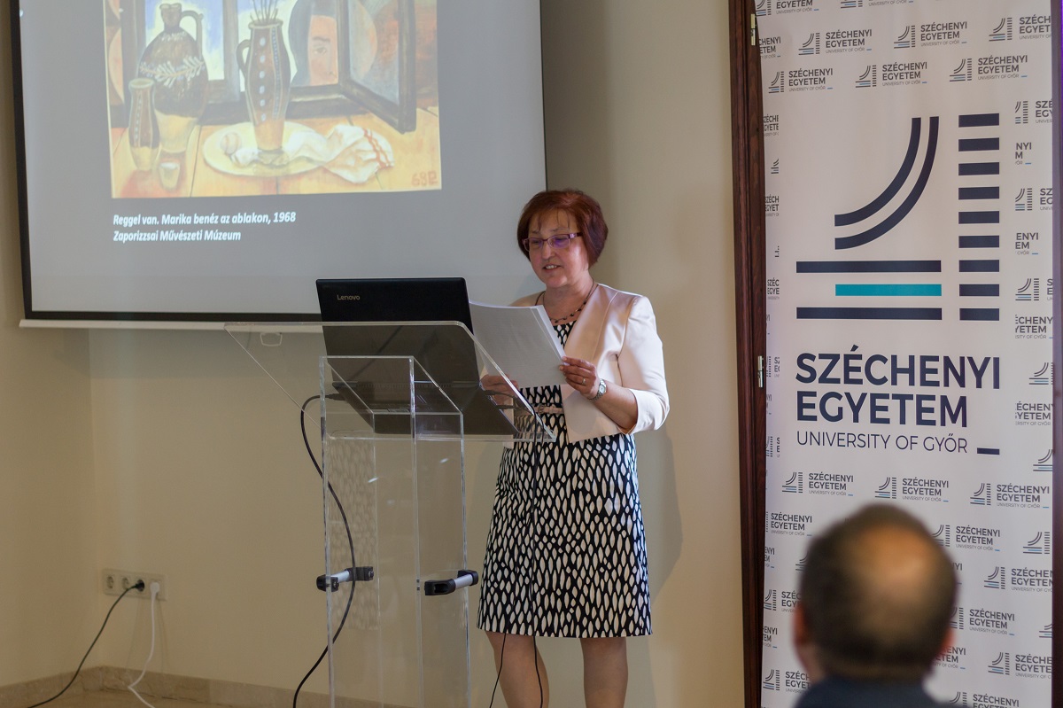 Jankáné Puskás Bernadett, a Nyíregyházi Egyetem tanára az 1960-as évek művészetében gyakran előforduló ablakmotívum jellegzetességeit ismertette. Az ablak a festészet gyakori motívuma, a benti és a kinti valóságot egymástól elhatároló művészeti elem, amely által a bezártság és a szabadság ellentéte sokrétű jelentéssel gazdagodott: az ablak révén létrejön a kapcsolat a kinti szférával, és kitágul a tér.