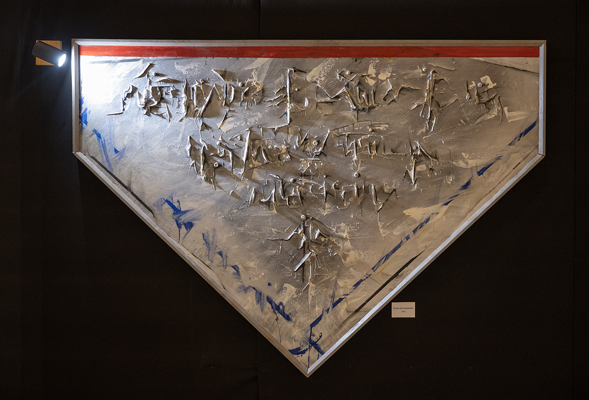 A látogató az életmű viszonylag korai szakaszának Jelrács-sorozatától, a ritkán bemutatott, korai Szürenon-korszakos olaj-papír munkák, konceptuális művek mellett a közelmúlt legkiforrottabb lézeres műtárgyaihoz érkezik meg. A termekben egymás mellett helyezkednek el a spaklikalligráfiák, a konceptuális munkák vagy épp az assemblage-ok. A kiállításinstalláción az 1960-as években surlófényes megvilágítással készült Jelrács-alkotásokat – a művész egykori, eredeti terve alapján – csupán bal felső fényforrással világítják meg, így segítve a nézőt a fény-árnyék koncepció felismerésében.