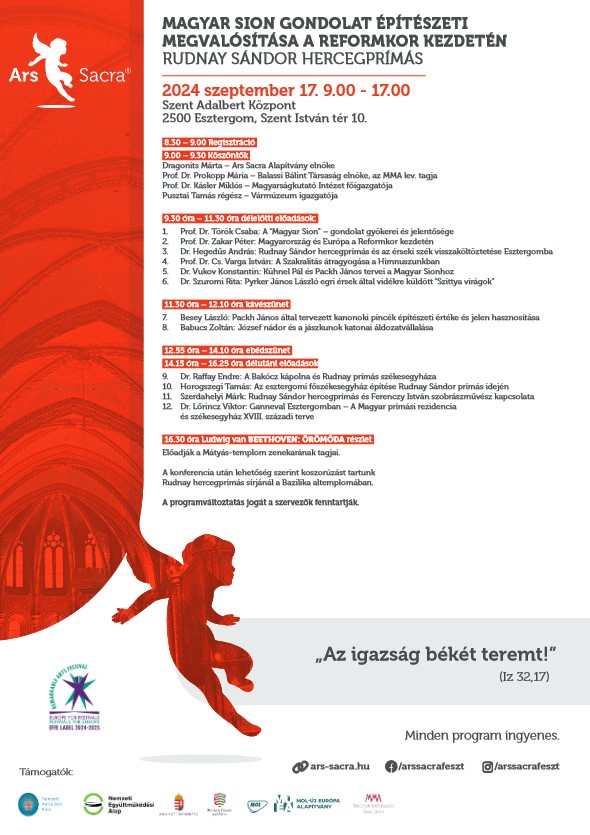 A Magyar Sion-gondolat építészeti megvalósulása a reformkor kezdetén – Rudnay Sándor hercegprímás (1819 – 1824) című konferencia teljes programja itt található: https://tinyurl.com/tme42rzw